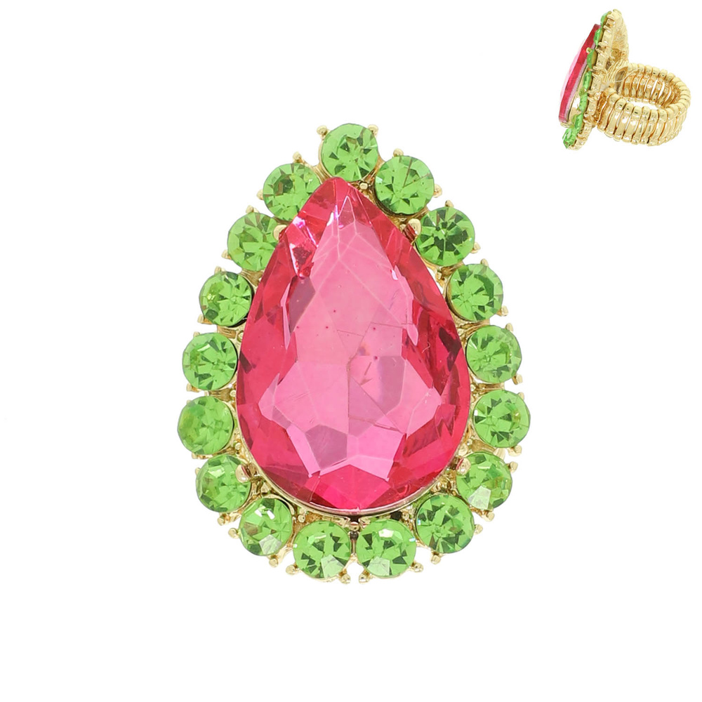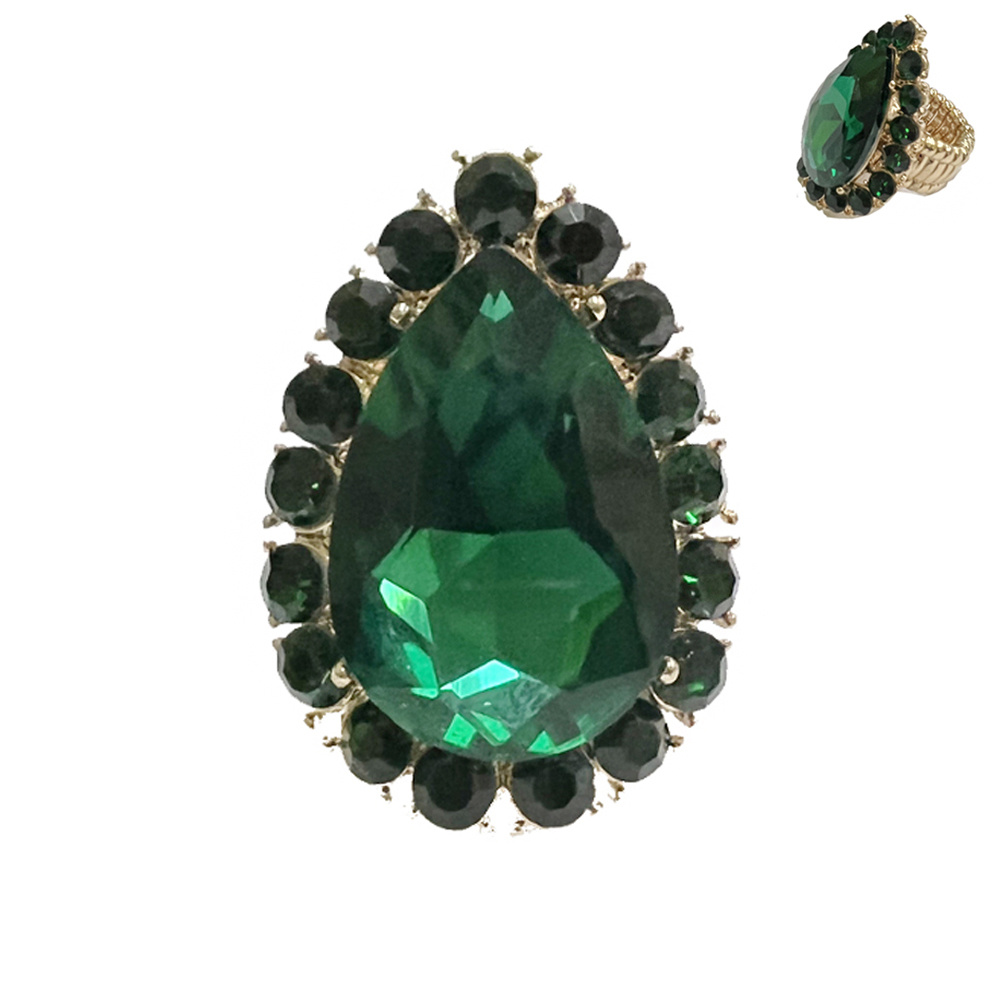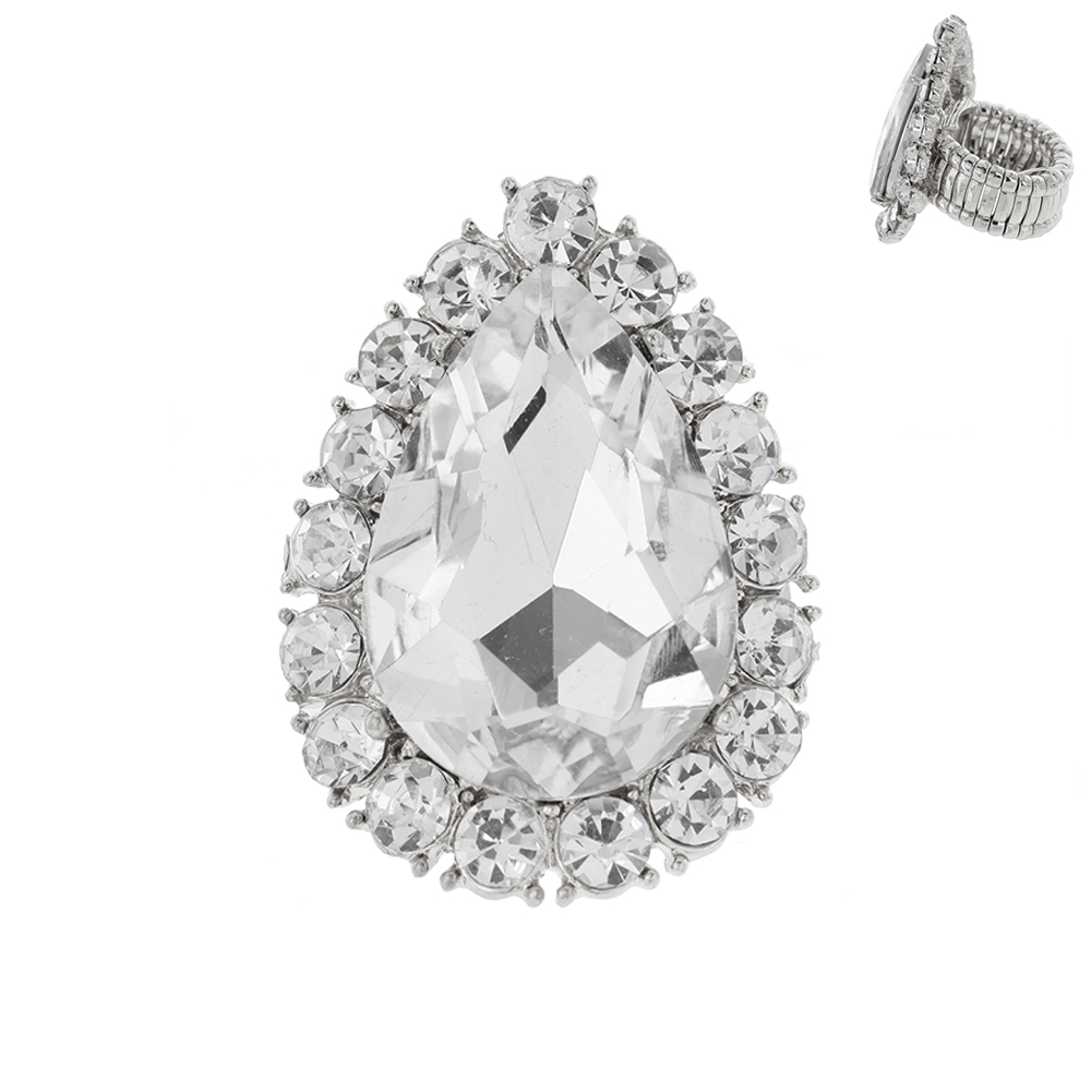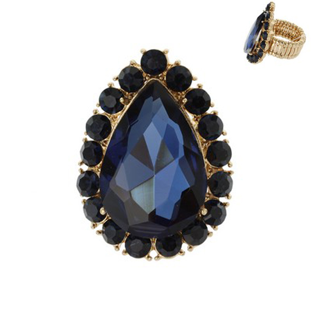 MULTI-CUT CRYSTAL BEZELED PEAR-SHAPED GEMSTONE STRETCH RING