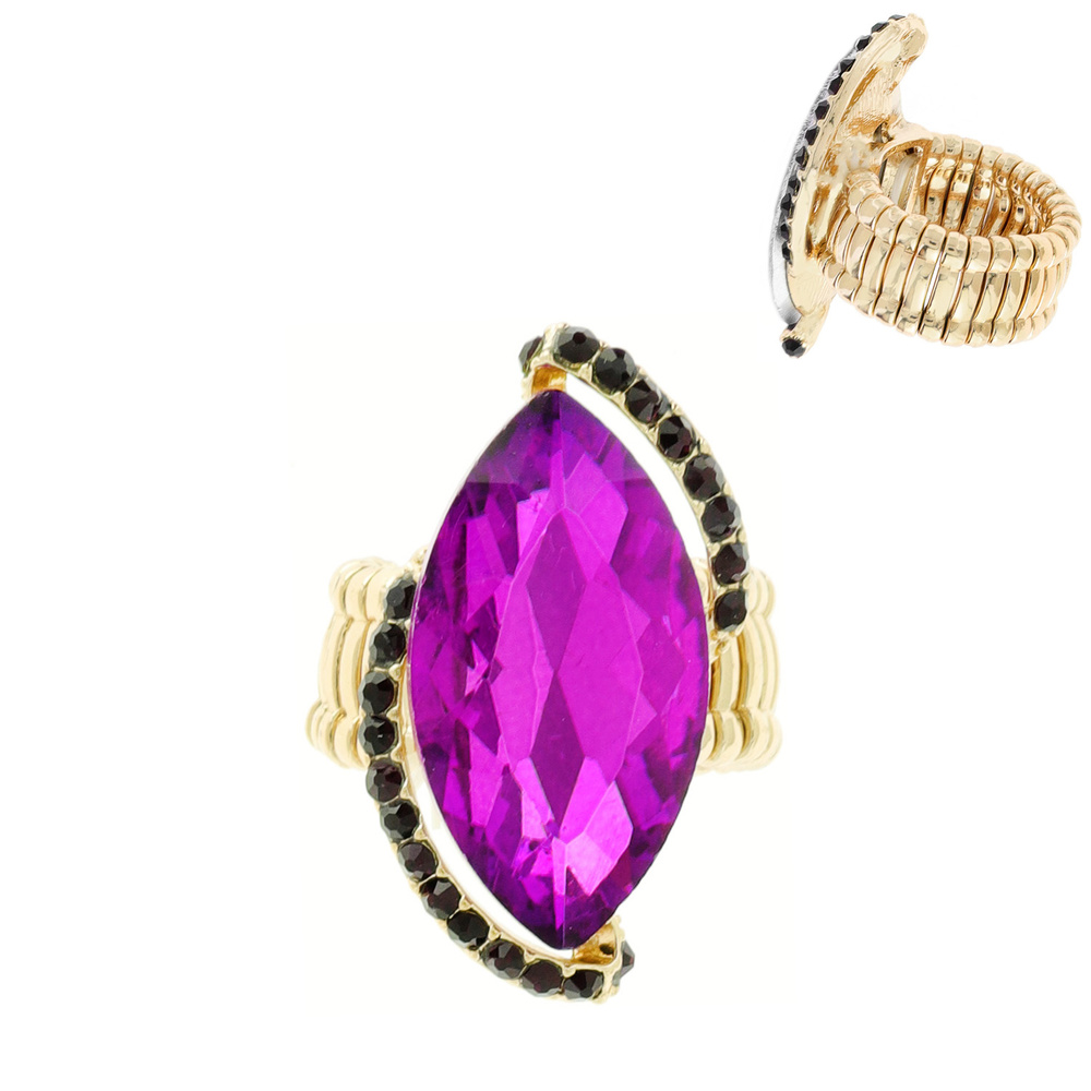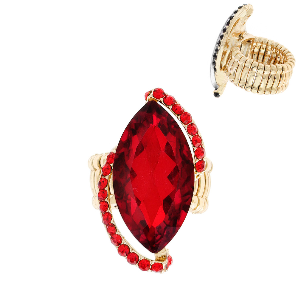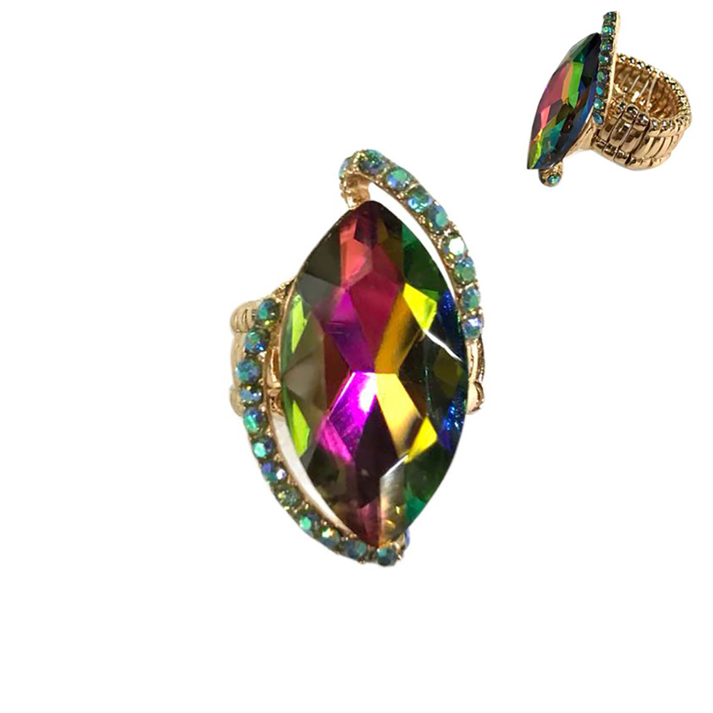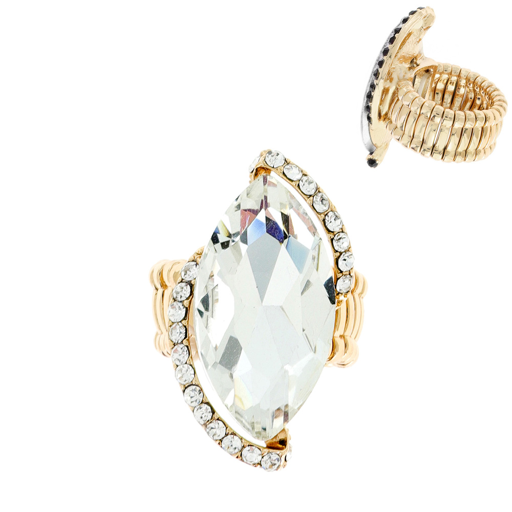 CRYSTAL MARQUISE CUT RHINESTONE TRIM STRETCH RING