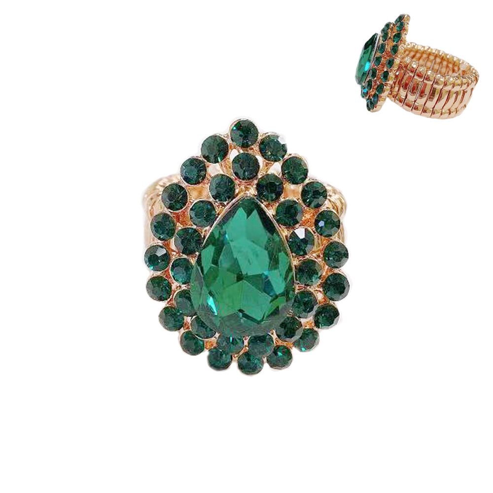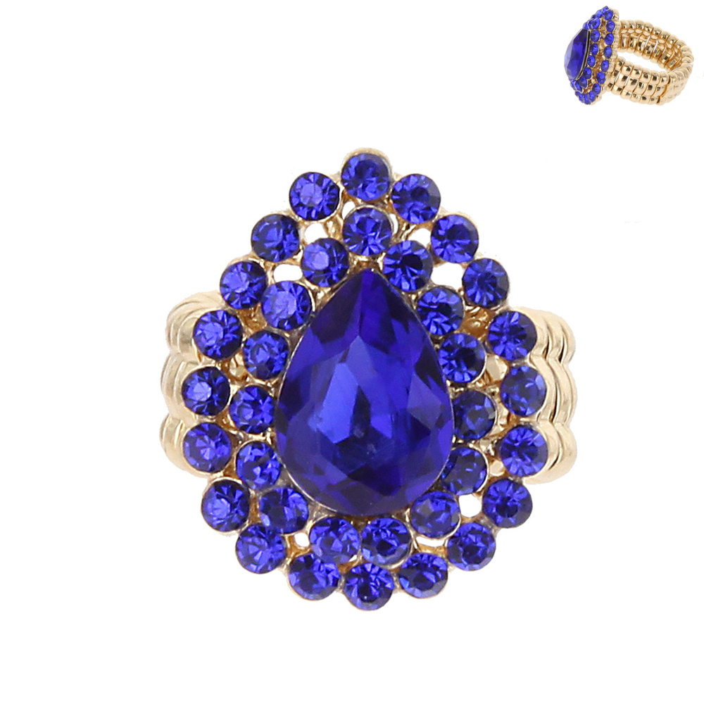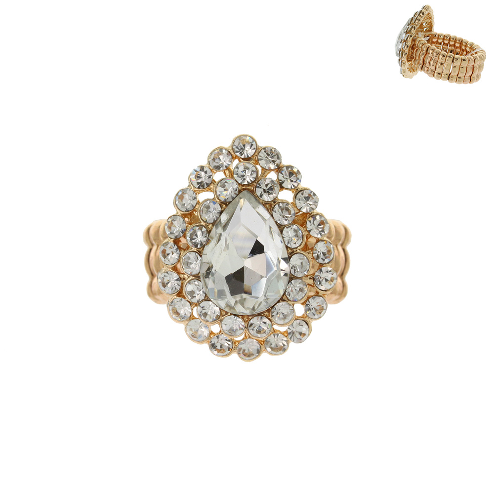 CRYSTAL RHINESTONE TEARDROP HALO STRETCH RING