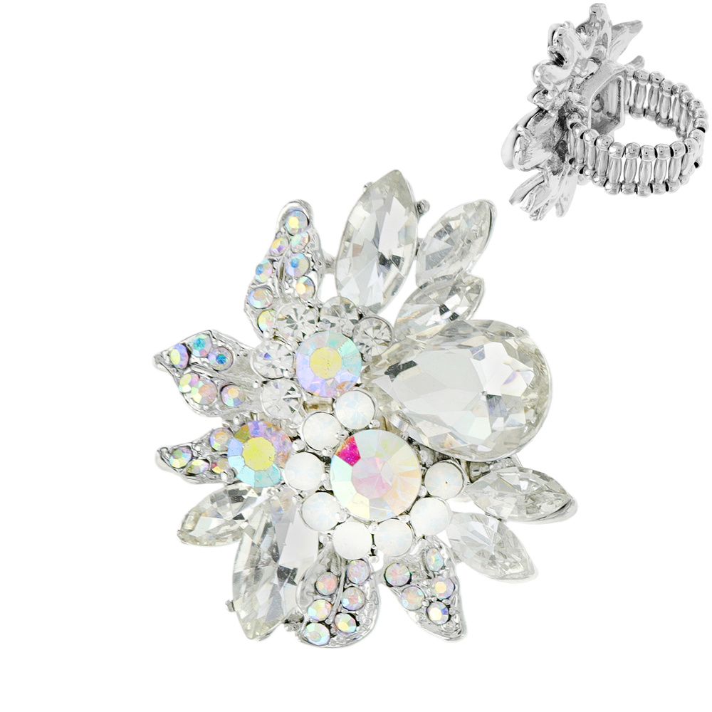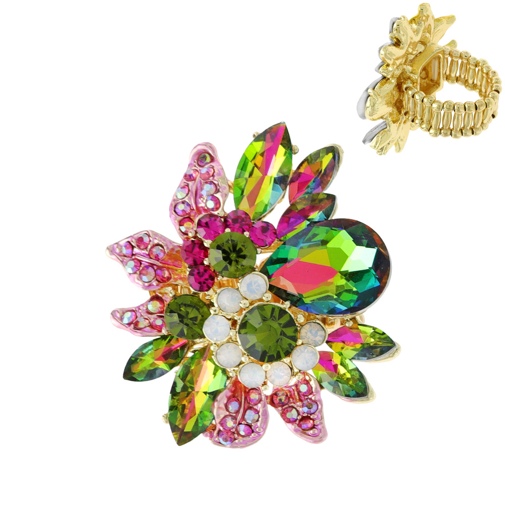 FLORAL MULTI-CUT CRYSTAL CLUSTER STRETCH RING IN GOLD-TONE METAL
