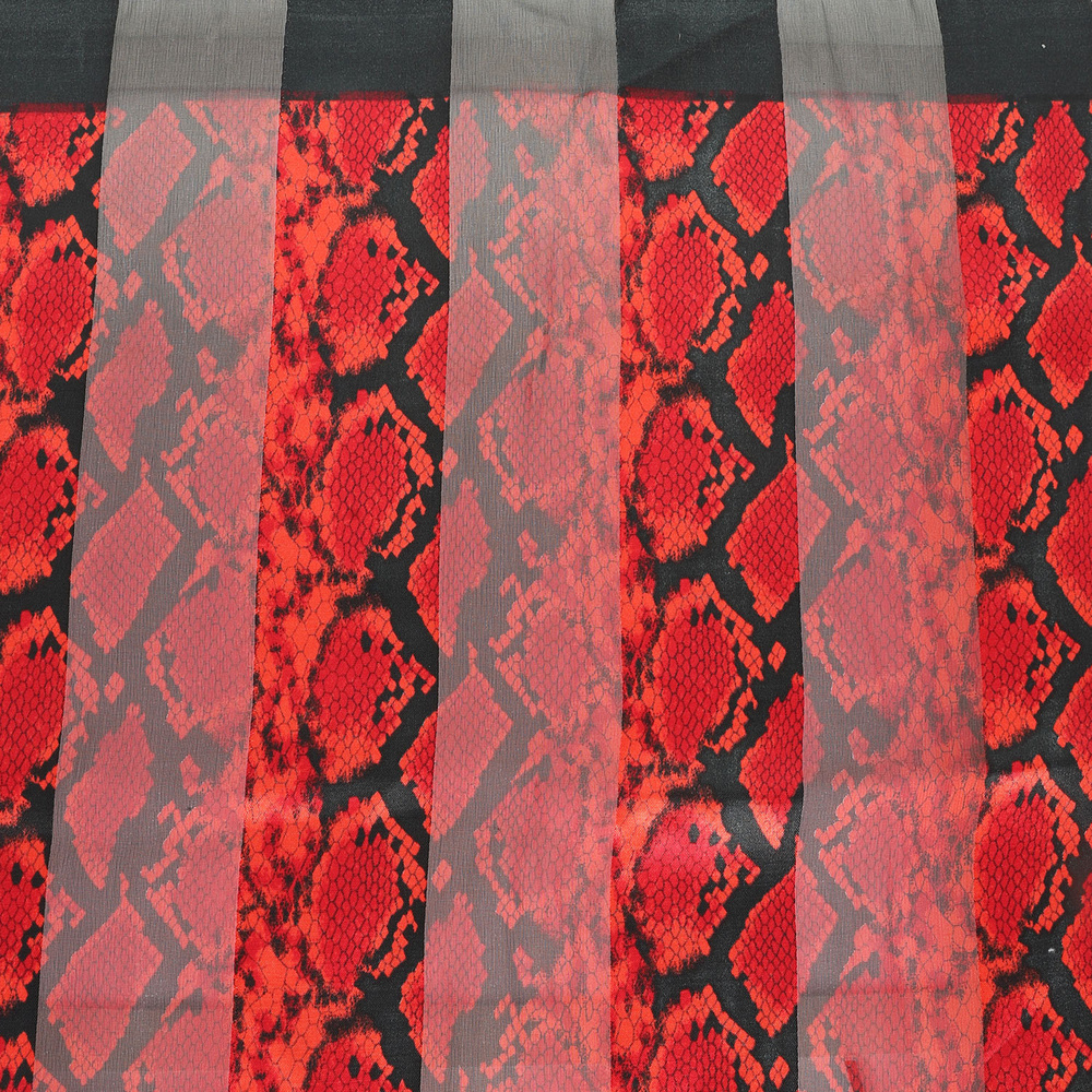 Satin and Chiffon Striped Scarf with Python Snake Pattern Print amd Black Border
