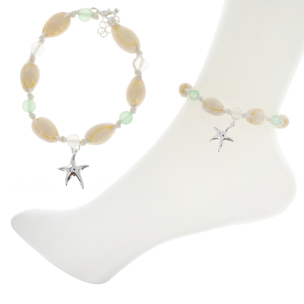 STARFISH -NAUTICAL THEMED ADJUSTABLE SEA GLASS BEADED CHARM ANKLET