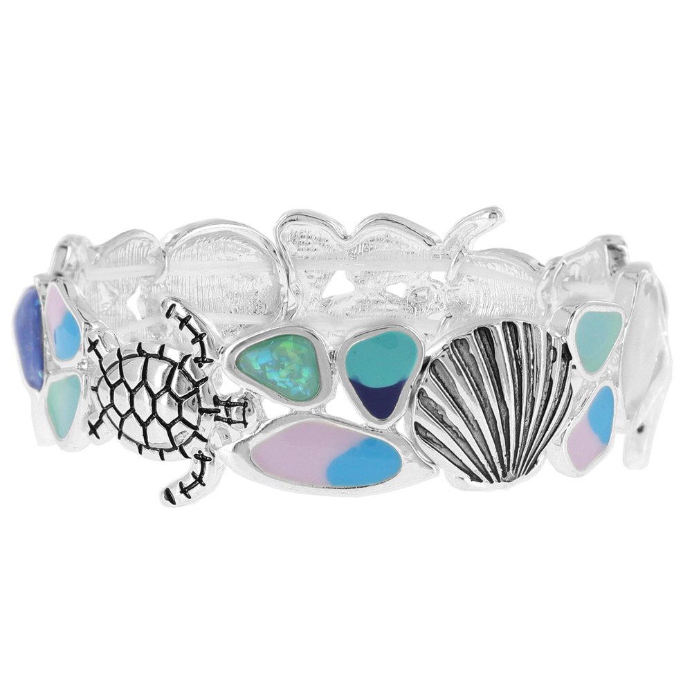 Sea Turtle Shell Starfish -nautical Sea Life Enamel Opal Stretch Bracelet