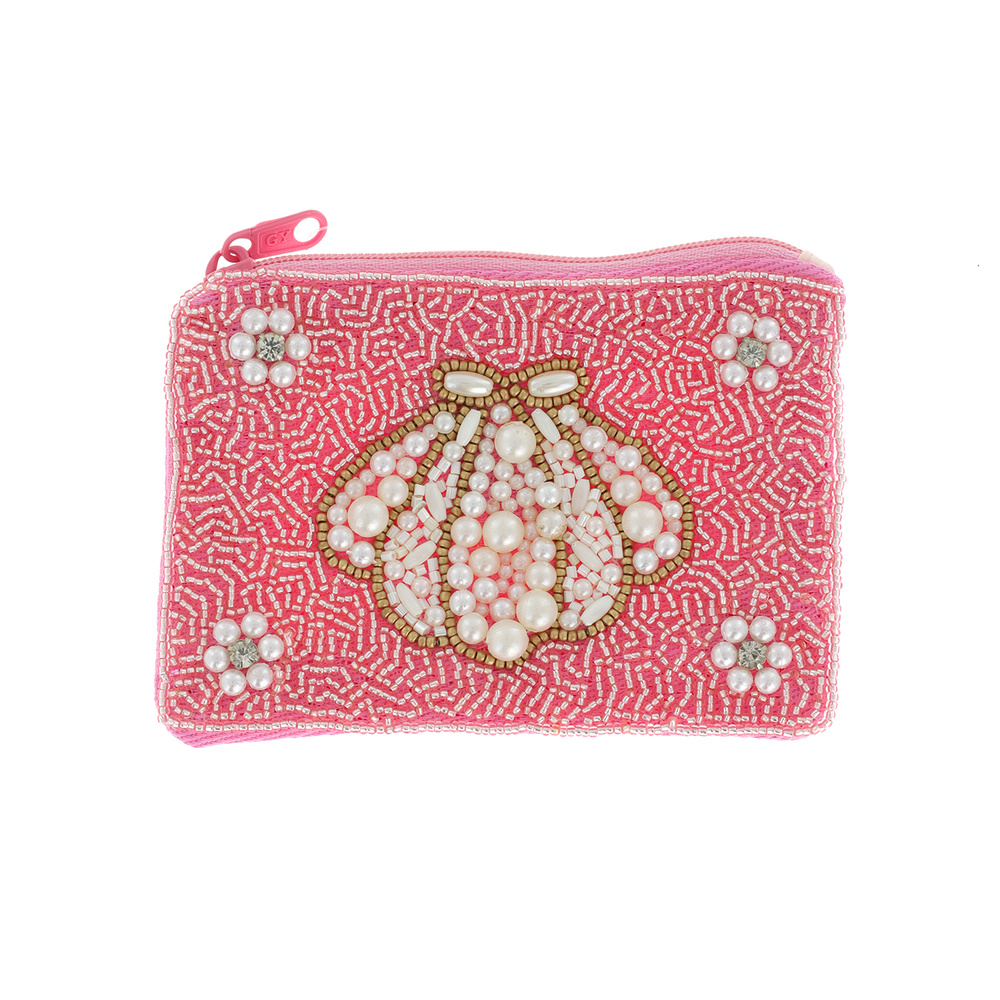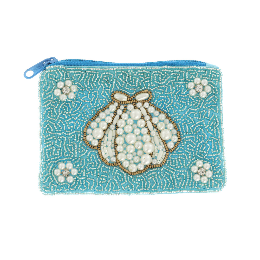Mother Of Pearls Nautical Handmade Scalloped Seashell Mix Beaded Coin Bag