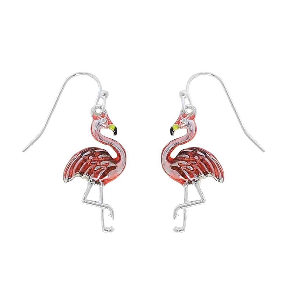 PINK FLAMINGO ENAMEL COATED DANGLE AND DROP HOOK EARRINGS