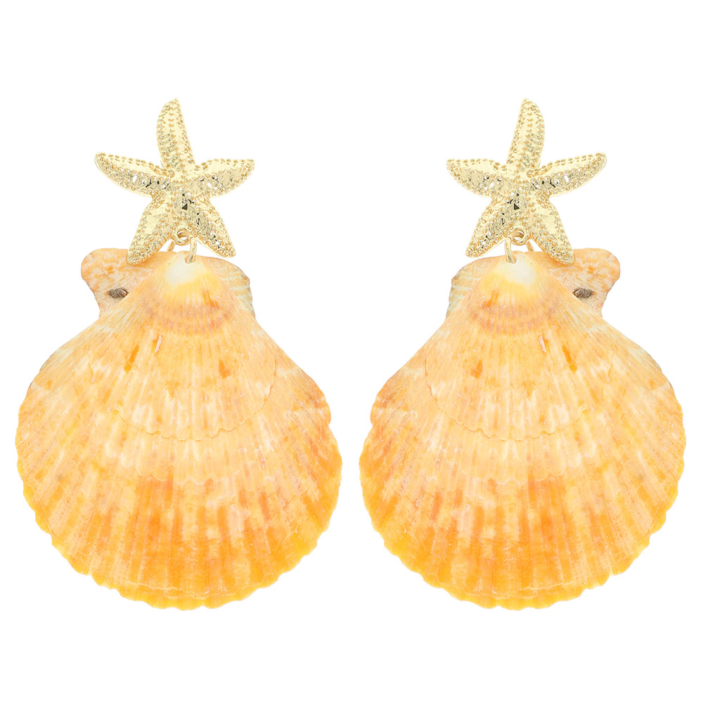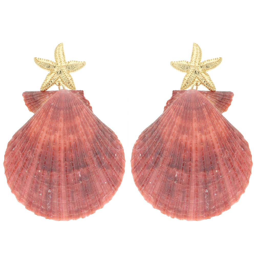 STARFISH COLORFUL SCALLOP SHELL POST DANGLE EARRINGS