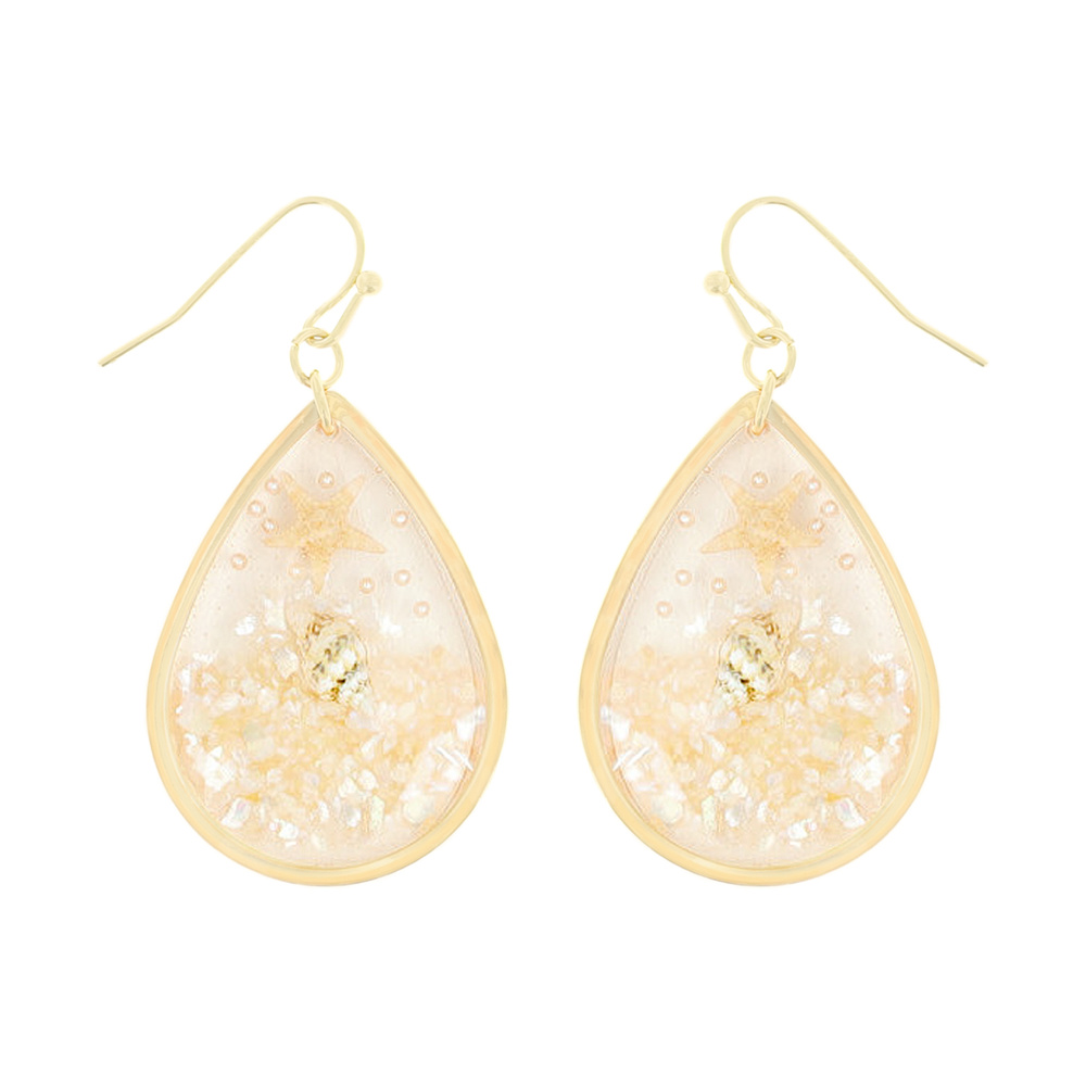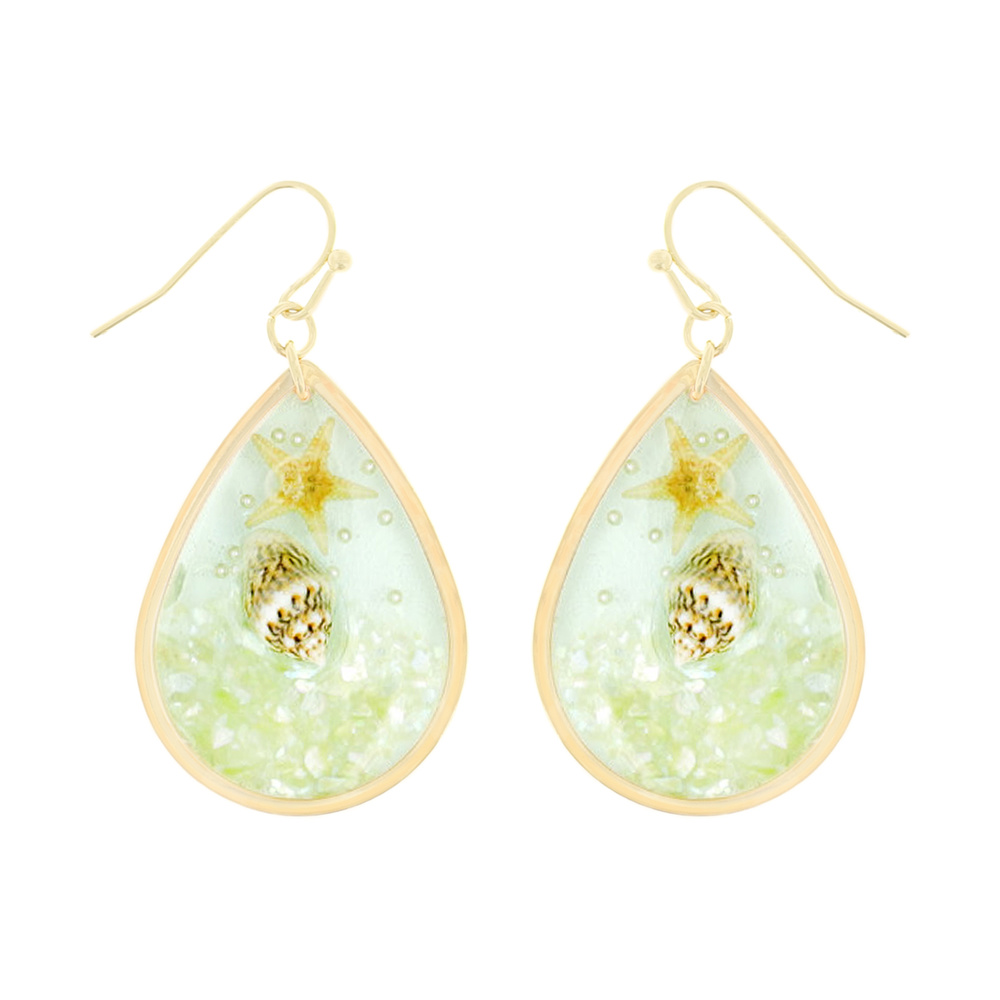 Resin Seashell Teardrop Dangle Earrings Ocean Beach Jewelry