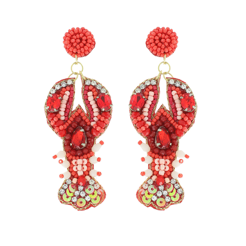 Fashion Beaded Sea Life Red Crawfish Lobster Seed Bead Dangle Earrings