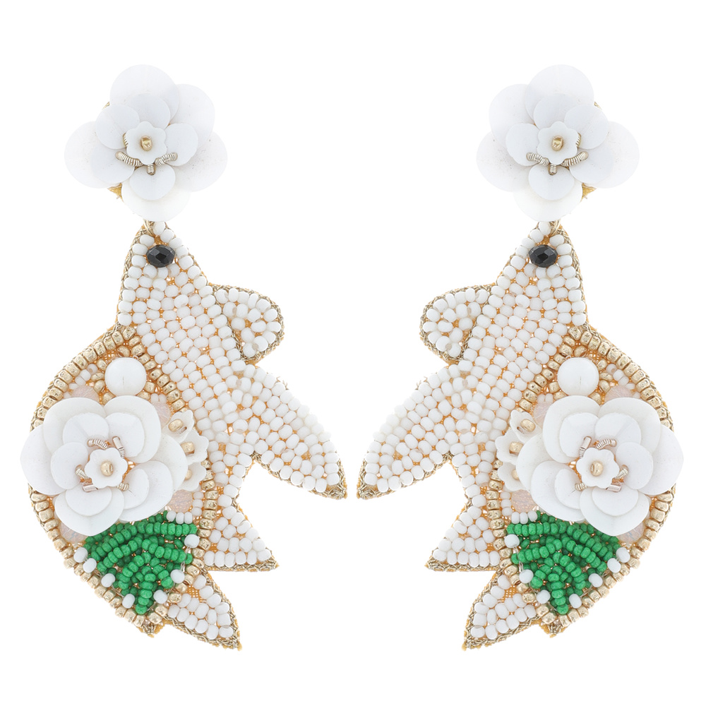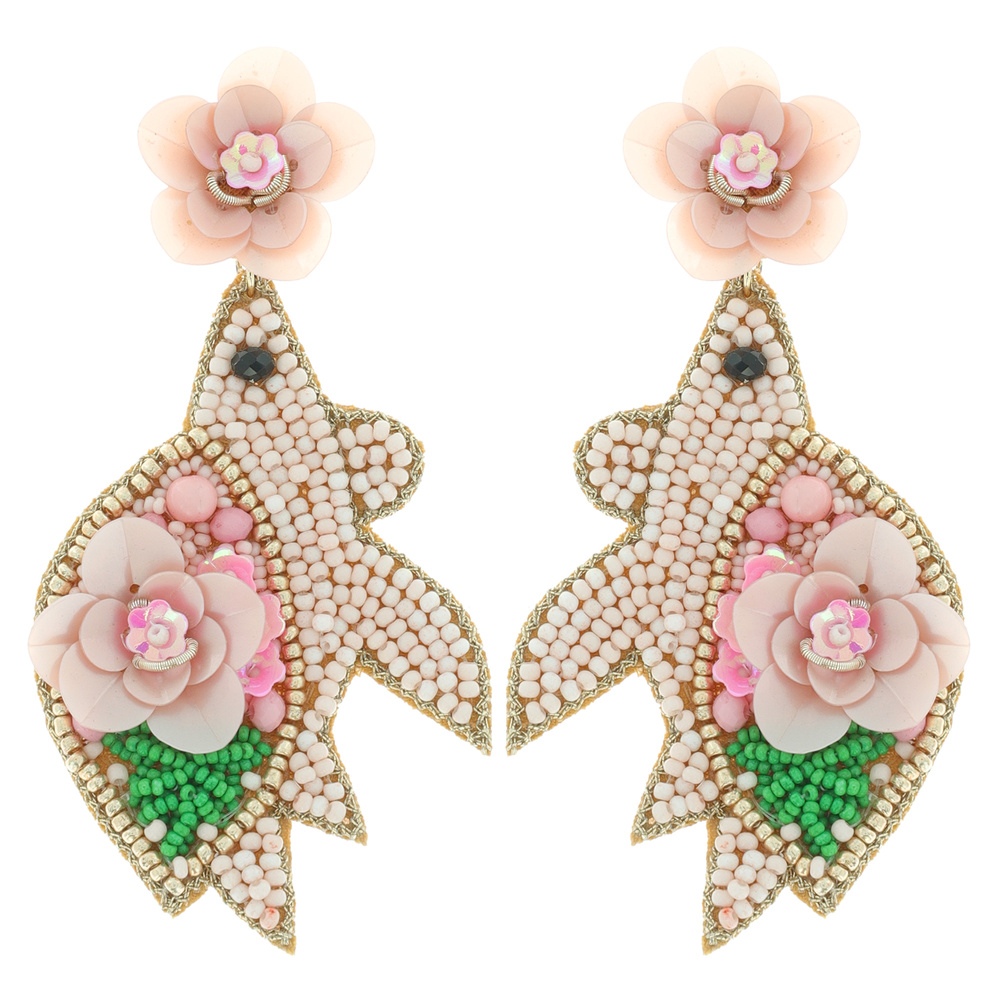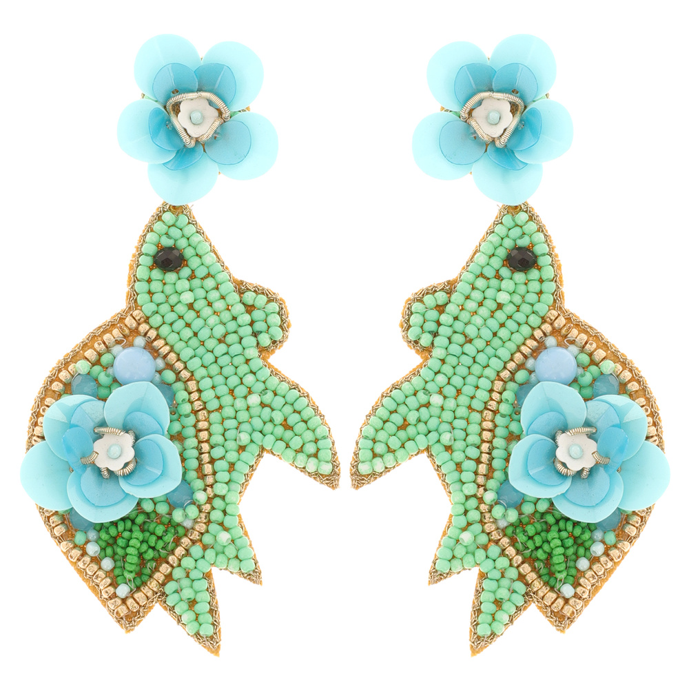 FLORAL SEQUIN HANDMADE SEA TURTLE BEADED DROP EARRINGS - FASHION STATEMENT JEWELRY