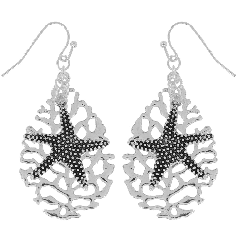 SEA STARFISH - NAUTICAL SEA LIFE CORAL REEF TEARDROP HOOK DANGLE EARRINGS
