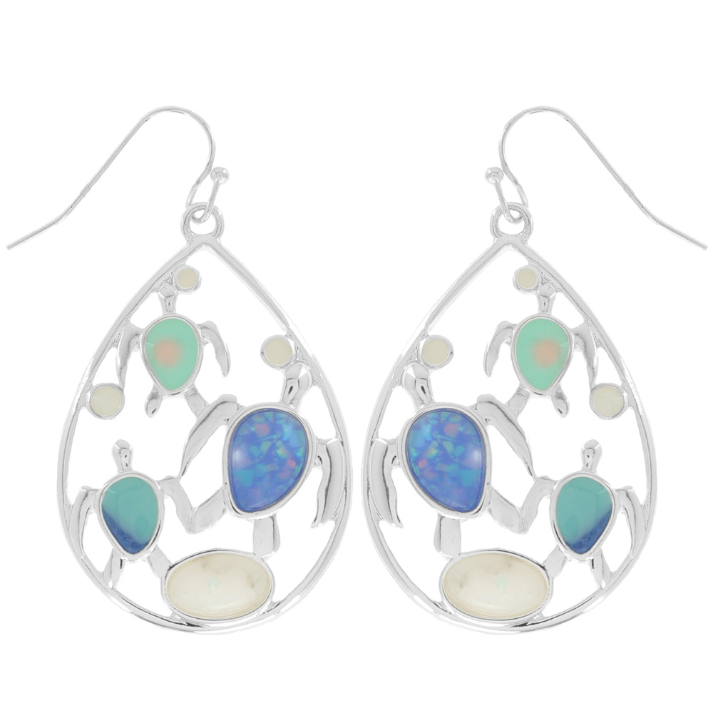 Sea Turtle -sea Life Synthetic Inlaid Opal Enamel Open Teardrop/ Oval Dangle And Drop Hook Earrings