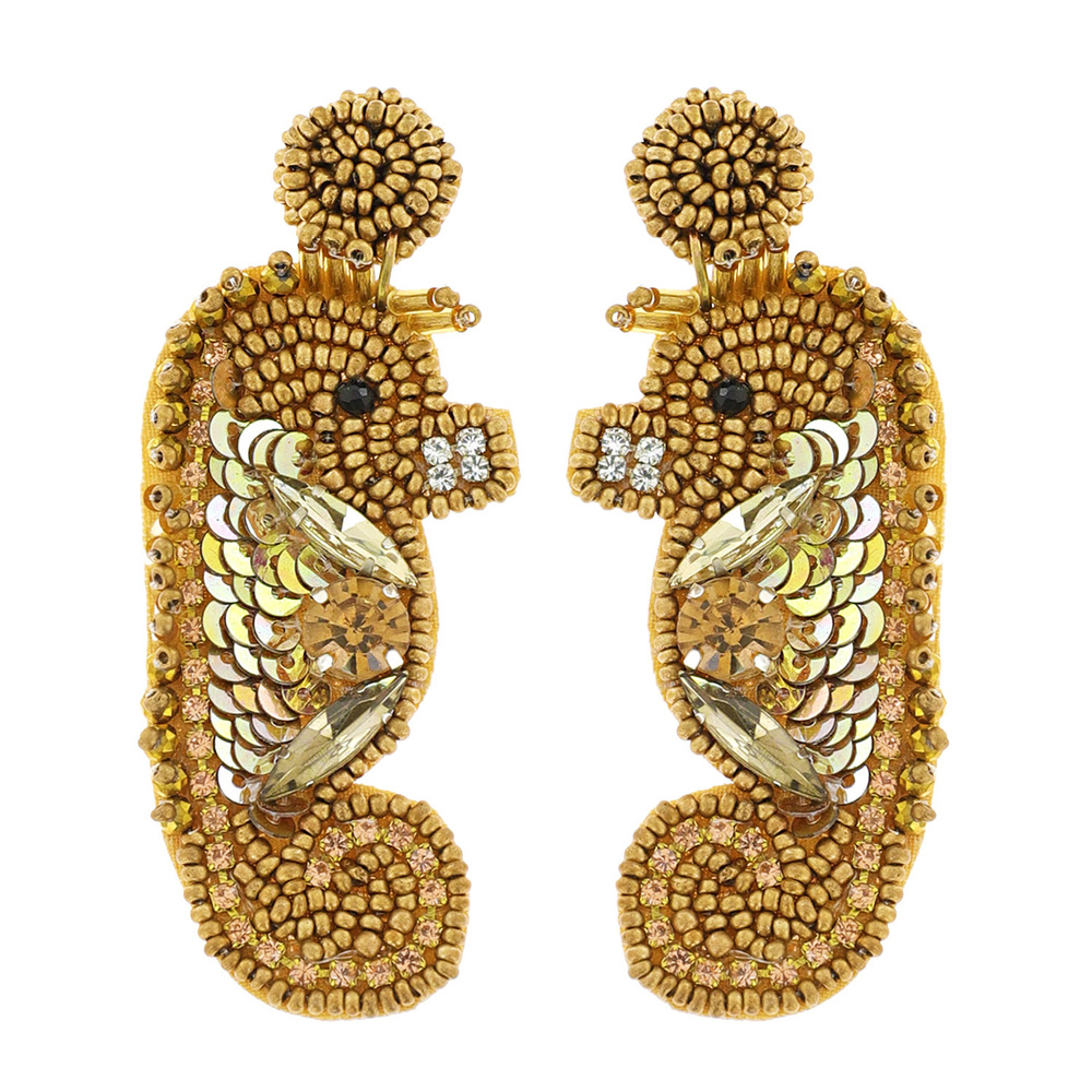 Seahorse Seed Bead Handmade Nautical Sea Life Beadwork Drop Dangle Earrings