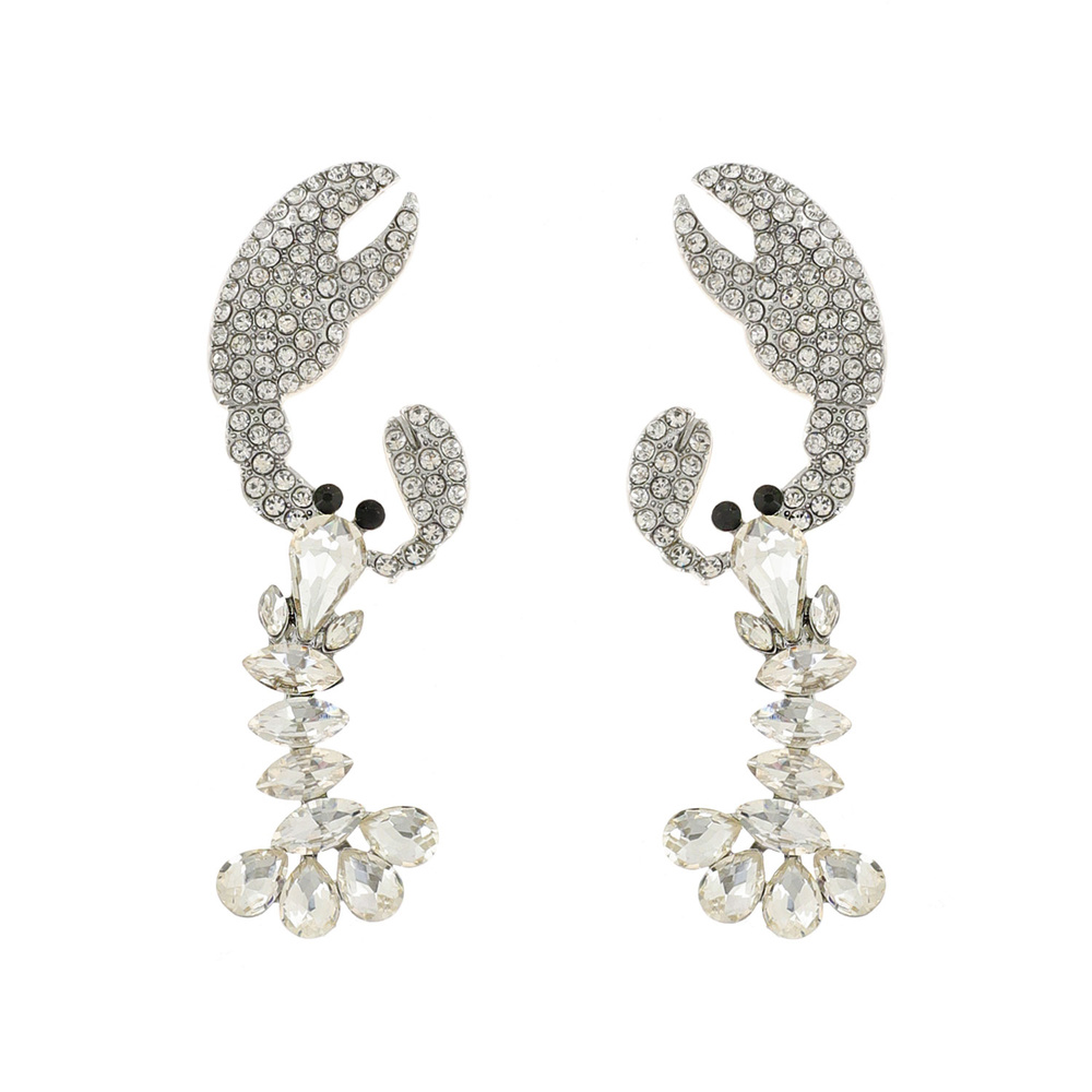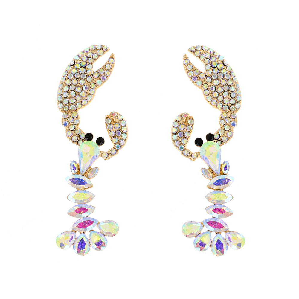 SEA LIFE LOBSTER CRUSTACEAN CRYSTAL PAVE JEWELED DANGLE & DROP EARRINGS