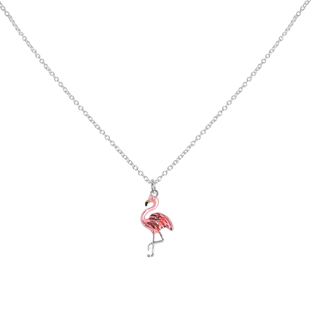 Pink Flamingo Enamel Coated Pendant Necklace