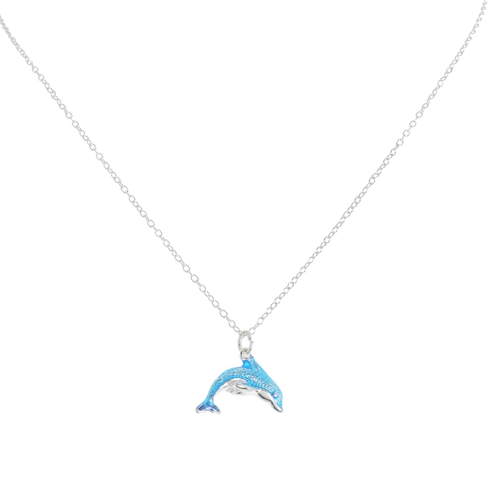 SEA LIFE BLUE DOLPHIN ENAMEL COATED ADJUSTABLE PENDANT NECKLACE IN SILVER TONE METAL