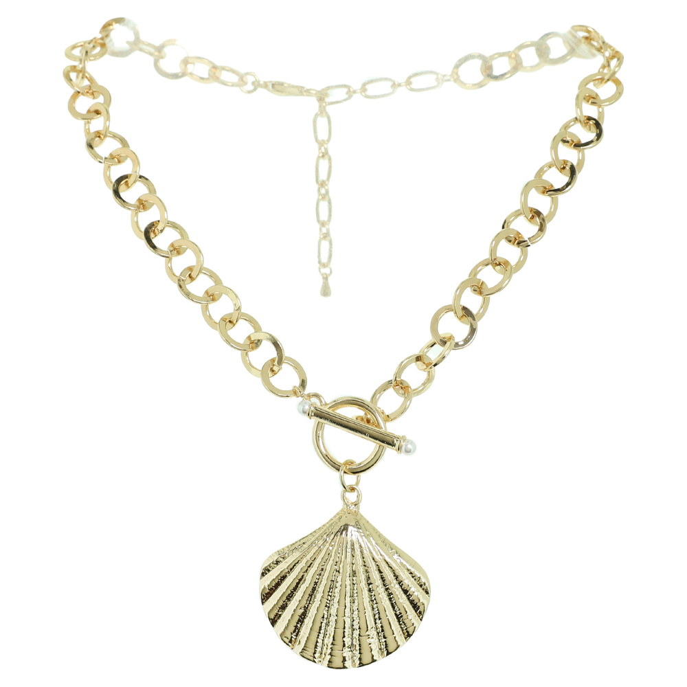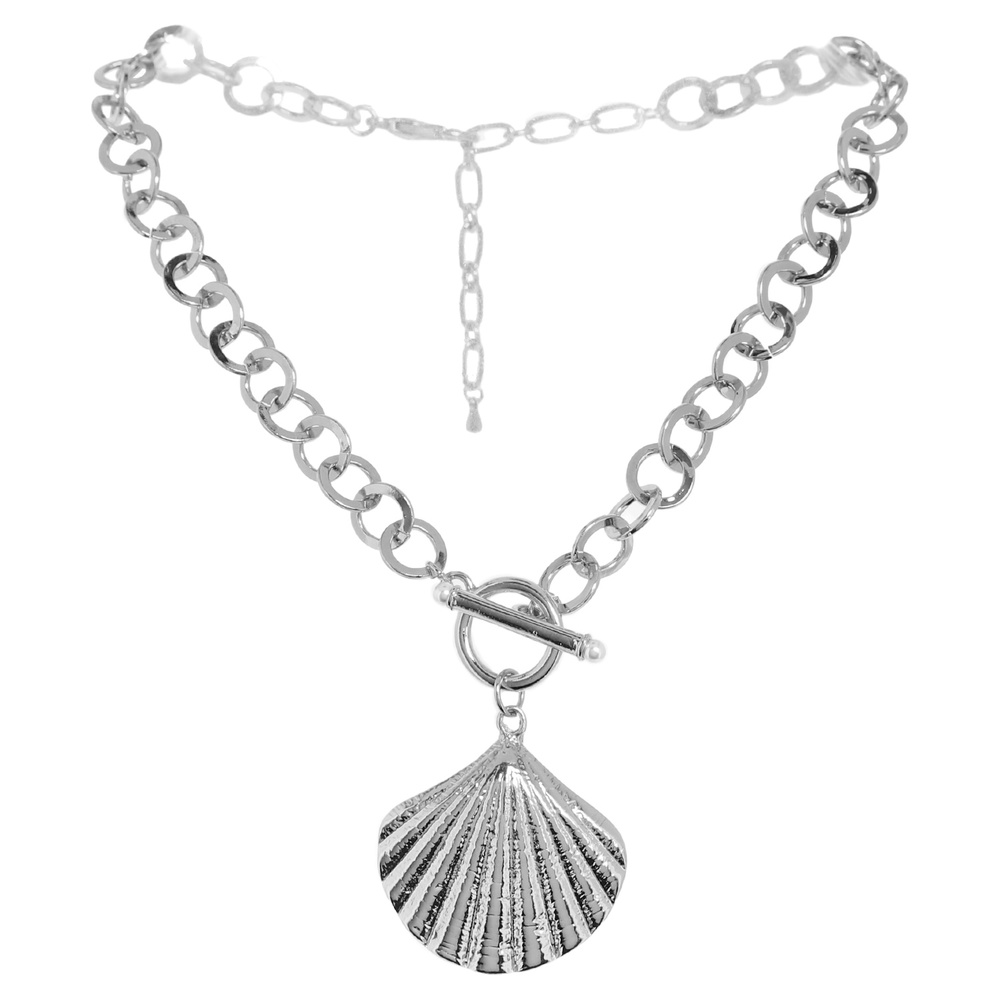 SCALLOP SEASHELL PENDANT TRACE CHAIN NECKLACE WITH T-BAR CLOUSRE
