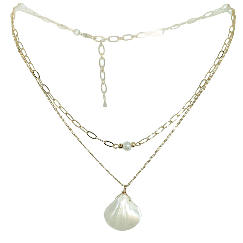 MULTI LAYERED MOTHER OF PEARL SHELL PENDANT CHAIN NECKLACE
