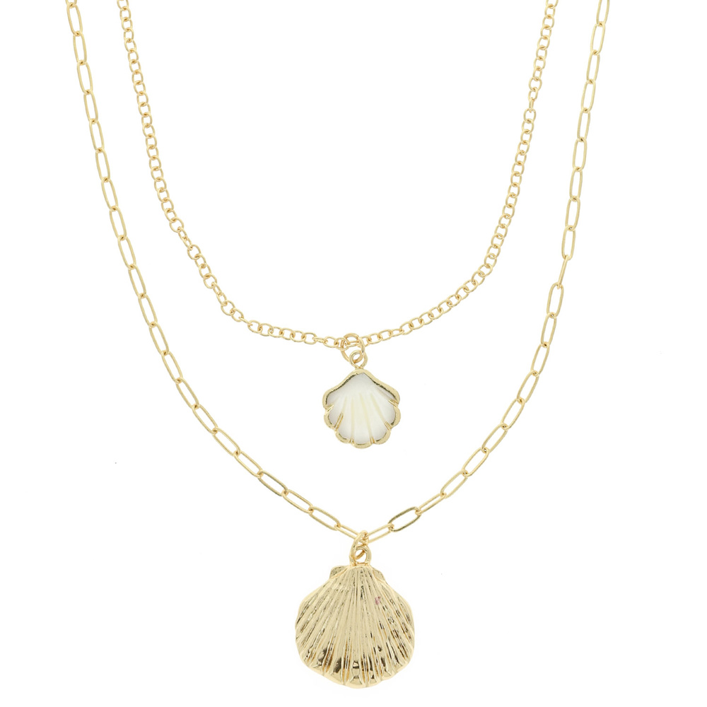 DUAL-STRAND THREE-DIMENSIONAL SEASHELL CHARM PENDANT NECKLACE IN GOLD-TONE METAL