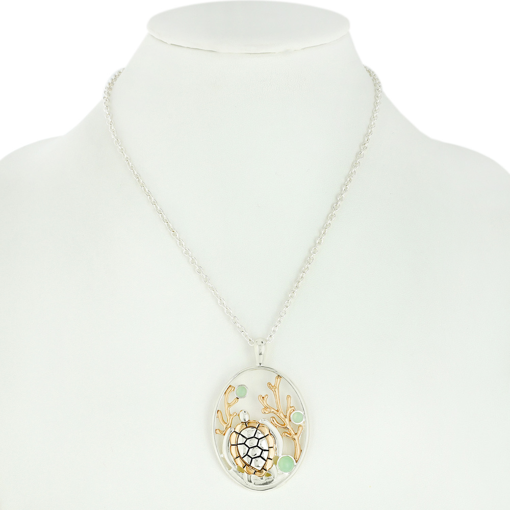 SEA LIFE CORAL REEF TURTLE CUTOUT PENDANT NECKLACE