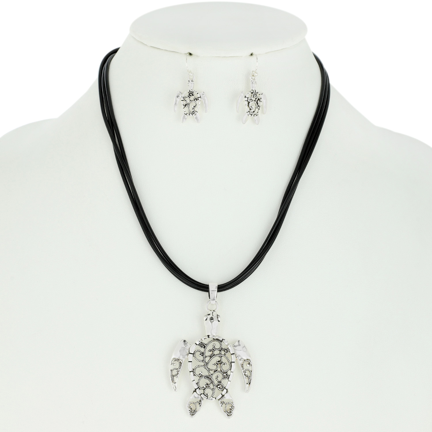 Turtle Tailored Filigree Pendant Necklace And Earrings Set