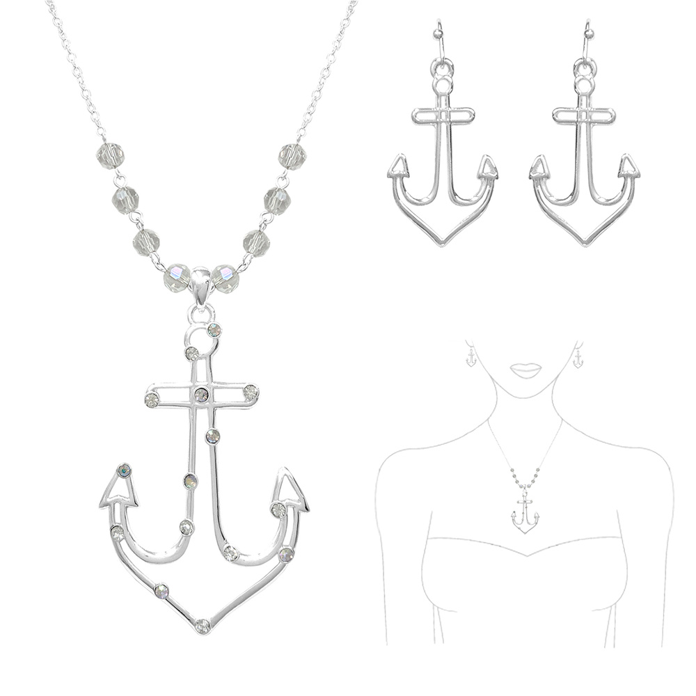 ANCHOR-SEA LIFE BEADED RHINESTONE CHAIN ADJUSTABLE NECKLACE EARRINGS SET