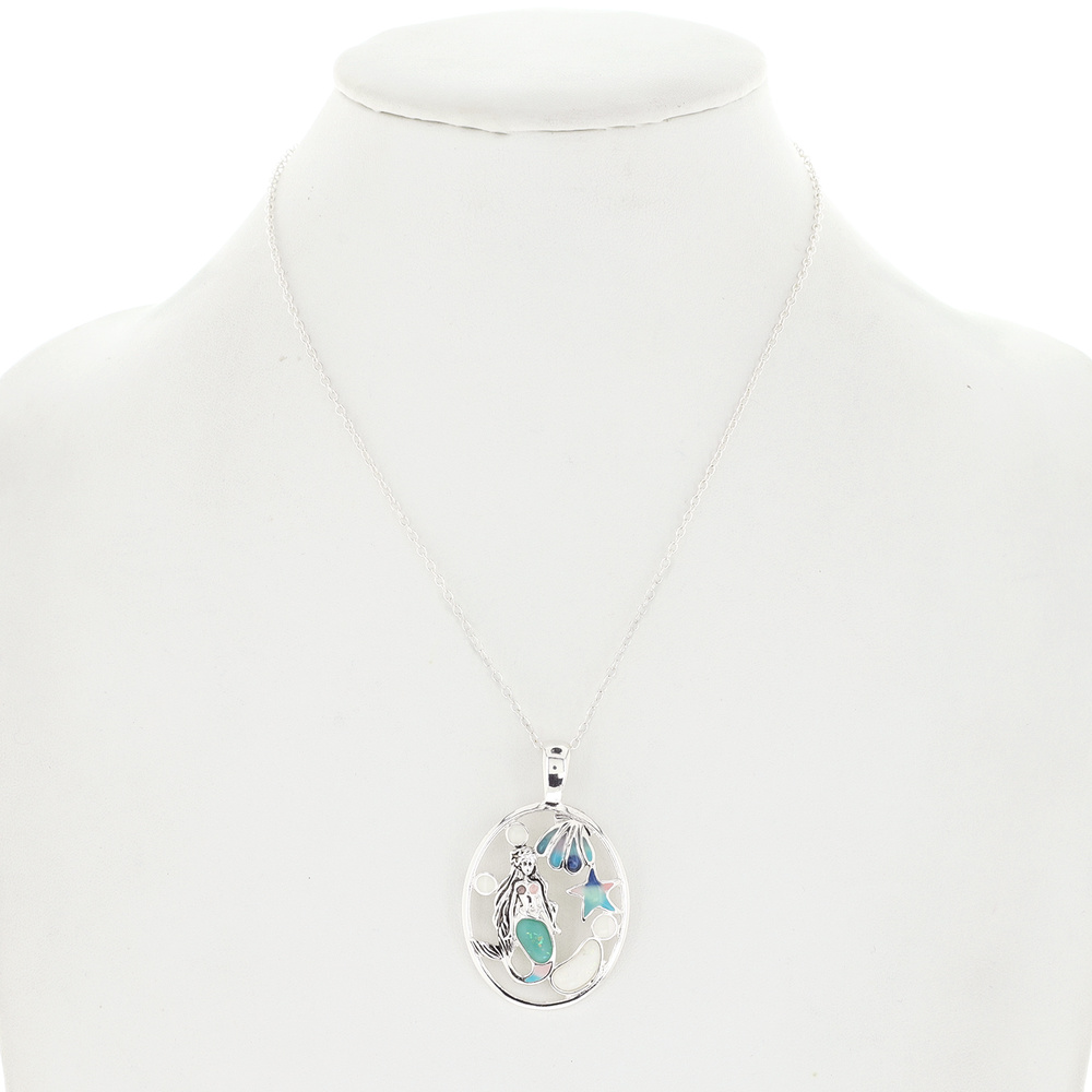MERMAID-GLITTERED ENAMEL SYNTHETIC BLUE OPAL CUTOUT PENDANT NECKLACE