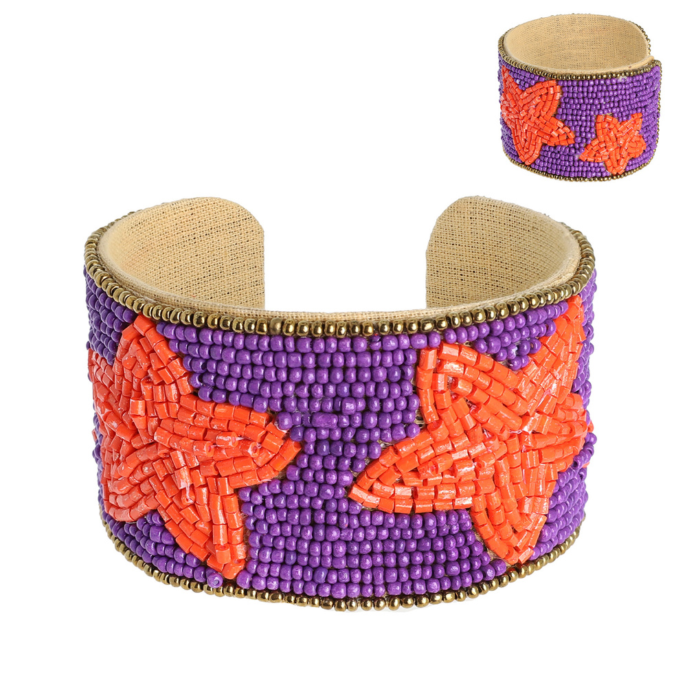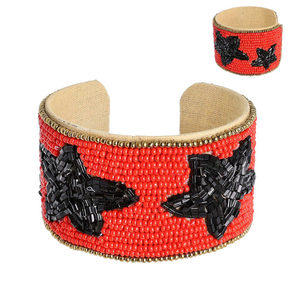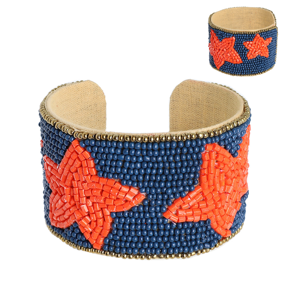 Game Day Beaded Star Pattern Snap Cuff Bracelet