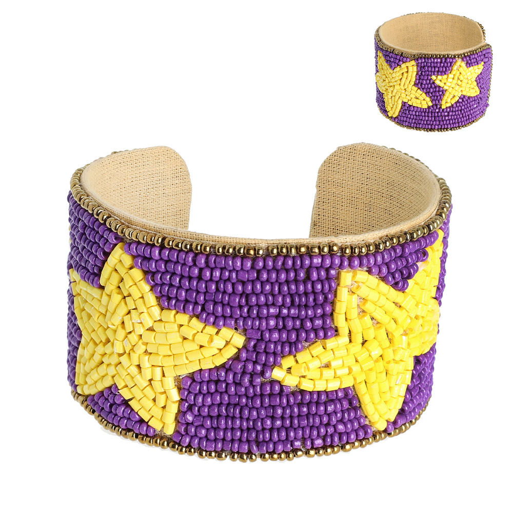GAME DAY TWO TONE BEADED STAR PATTERN SNAP CUFF BRACELET