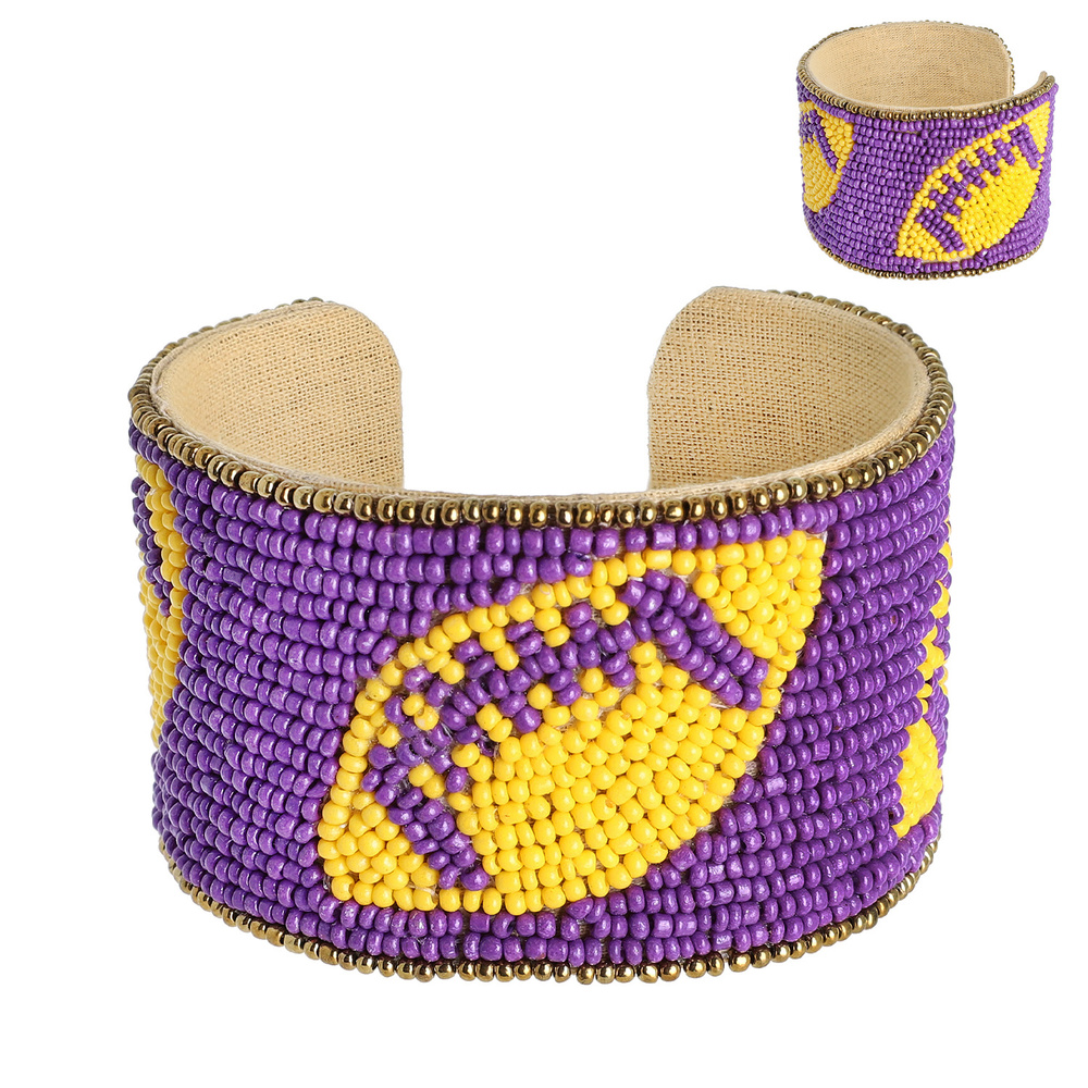 GAME DAY TWO TONE BEADED STAR PATTERN SNAP CUFF BRACELET