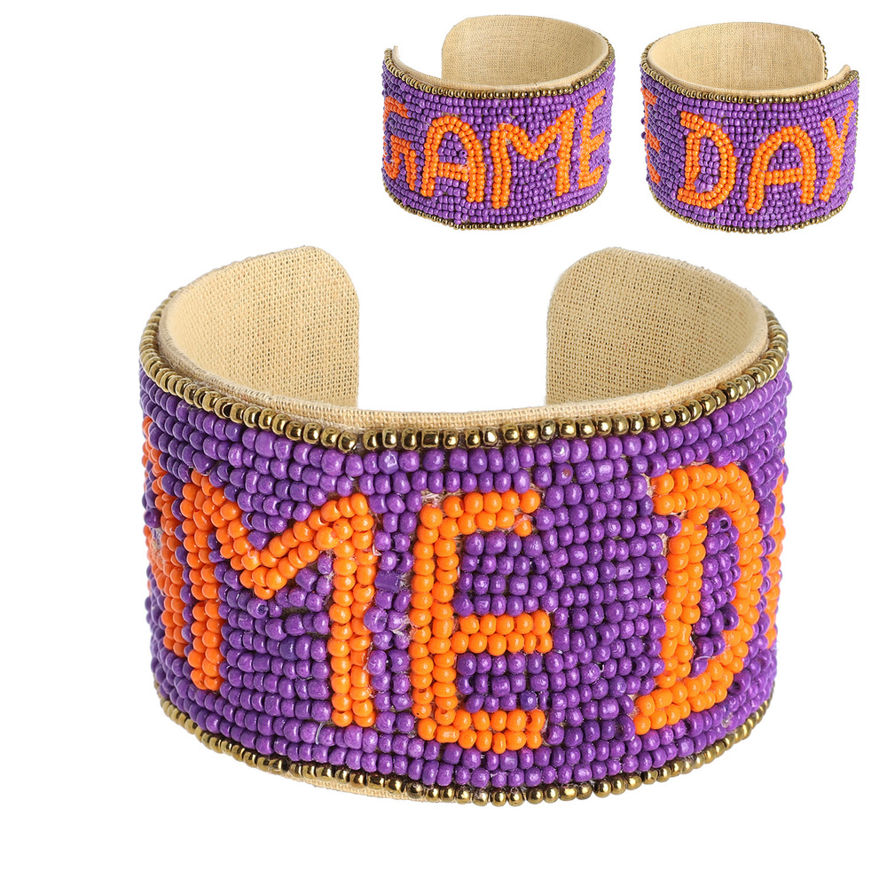 GAME DAY TWO TONE BEADED SNAP CUFF BRACELET