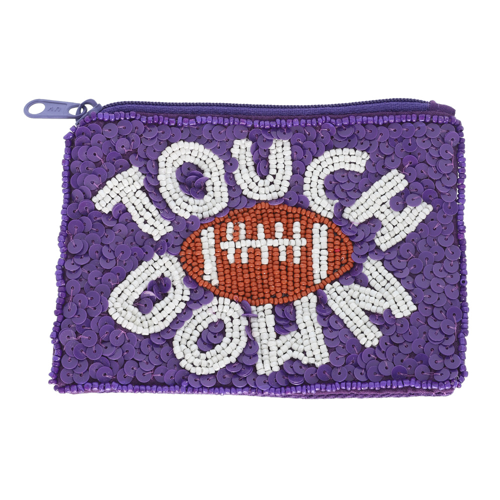 GAME DAY TOUCHDOWN FOOTBALL BEADED EMBROIDERY SEQUIN BEADED COIN BAG