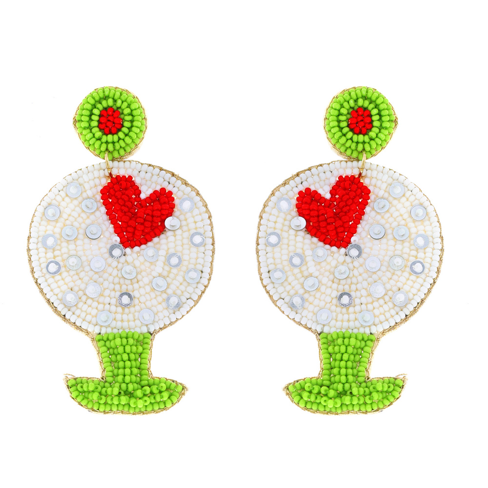 2-tier Heart Golf Ball Oh Stand Seed Bead Handmade Beaded Embroidery Dangle And Drop Valentine Earrings