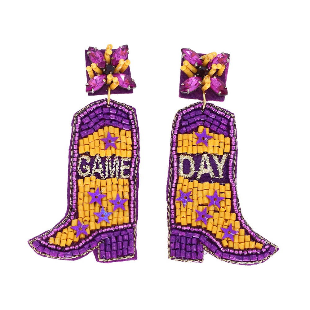 JEWELED WESTERN GAME DAY COWBOY BOOTS SEED BEAD HANDMADE BEADED EMBROIDERY LONG DROP EARRINGS