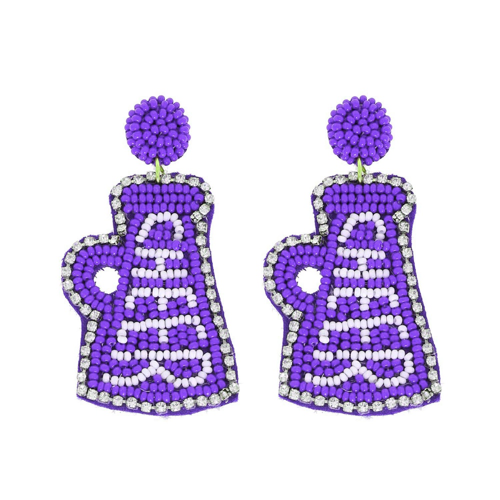 2-TIER JEWELED TWO-TONE "CHEER" MEGAPHONE BEADED EMBROIDERY DANGLE AND DROP EARRINGS