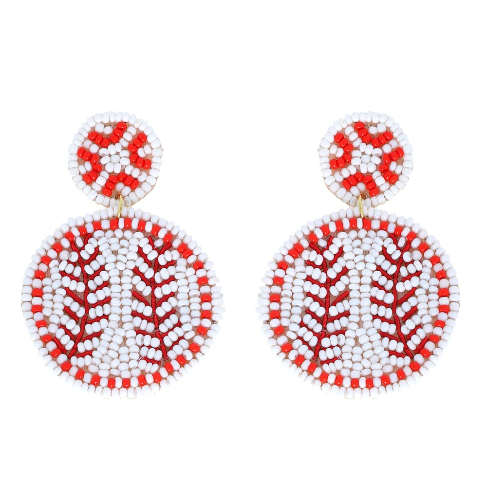 GAME DAY SOFTBALL SEED BEAD HANDMADE BEADED EMBROIDERY DROP EARRINGS