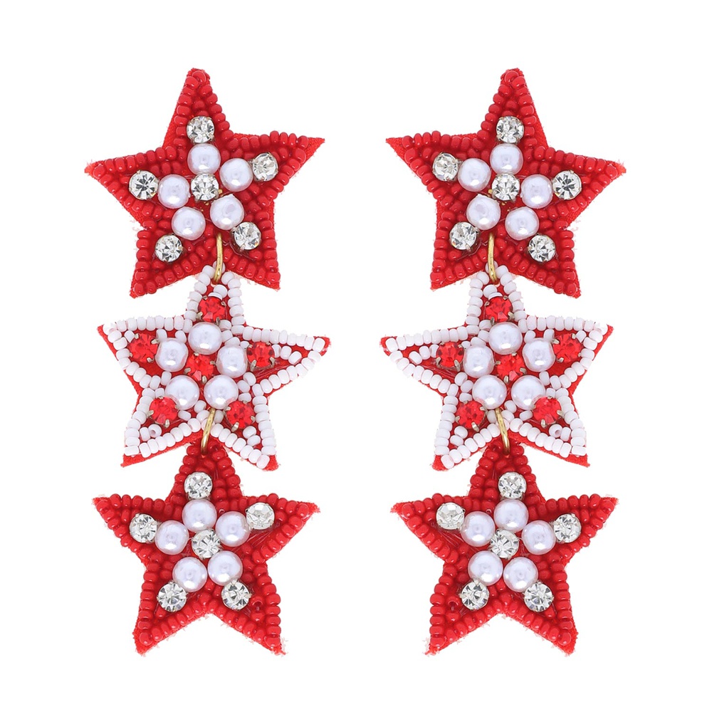 3-TIER GAME DAY STAR CRYSTAL RHINESTONE BEADED EMBROIDERY LONG DROP EARRINGS