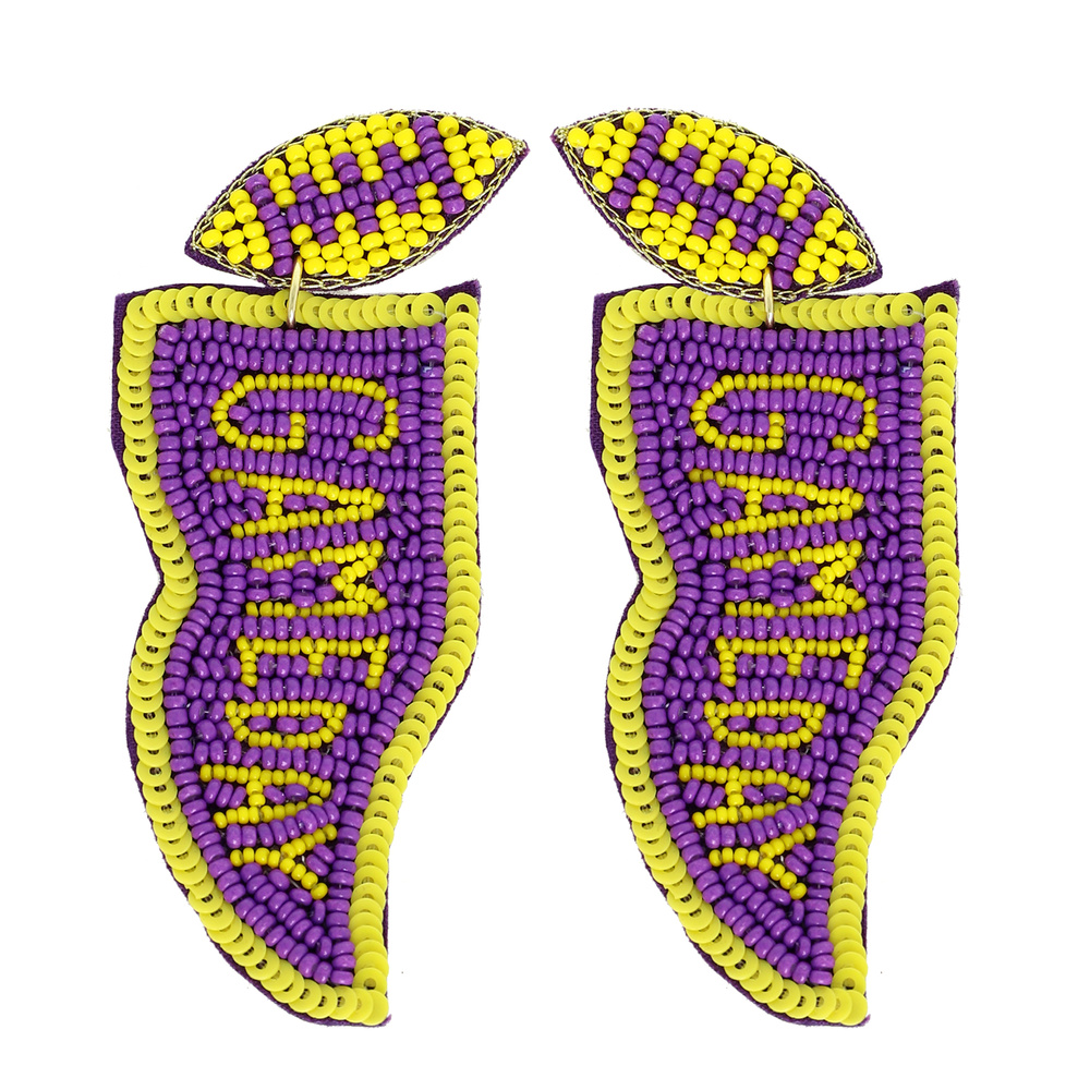 Game Day Letter Beaded Sequins Flag Post Earrings