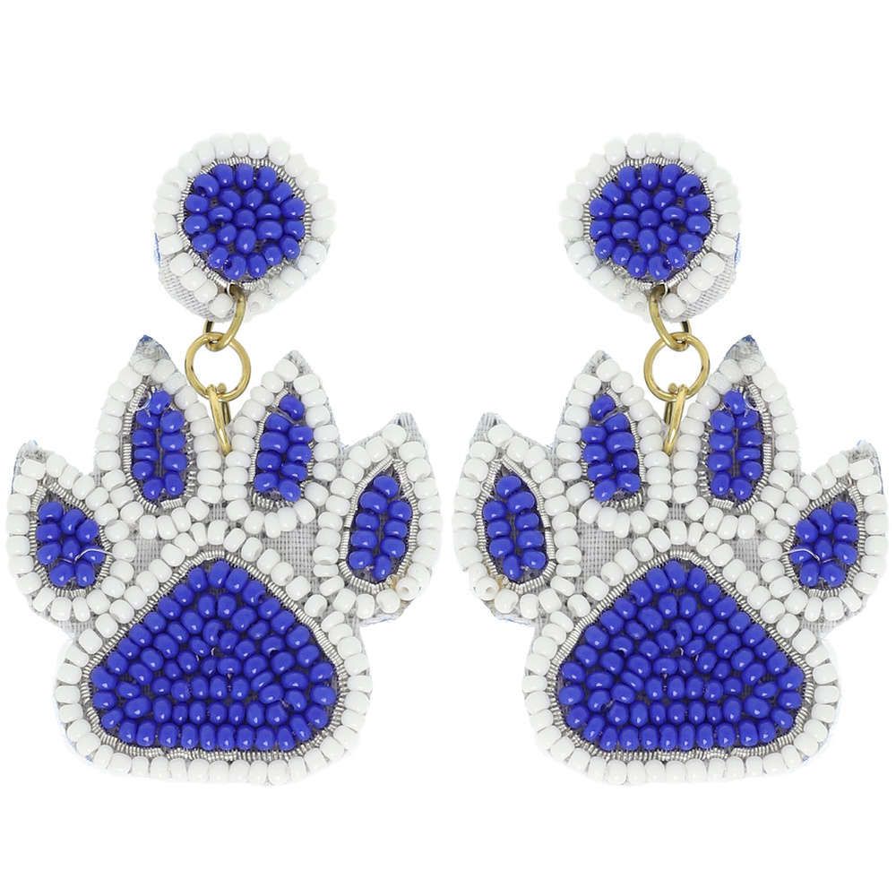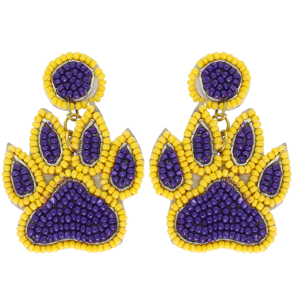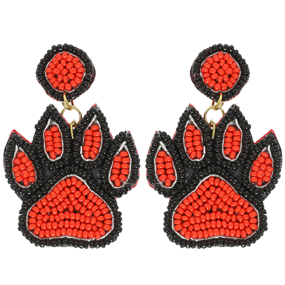 MULTI-TONE PAW PRINT SEAD BEAD EMBROIDERED EARRINGS