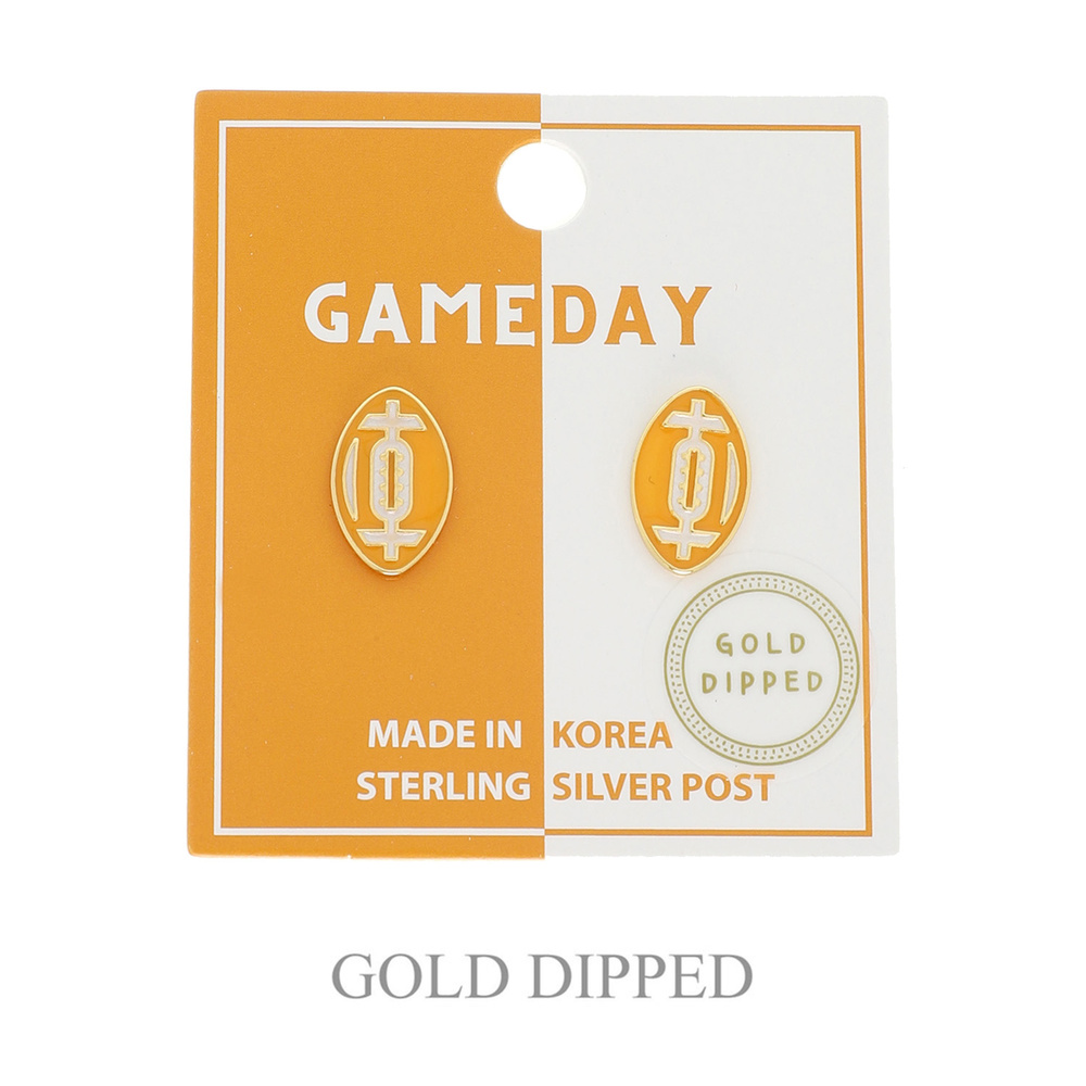 Sports Game Day Football Stud Earrings In White And Yellow Gold Plating Sterling Silver Post