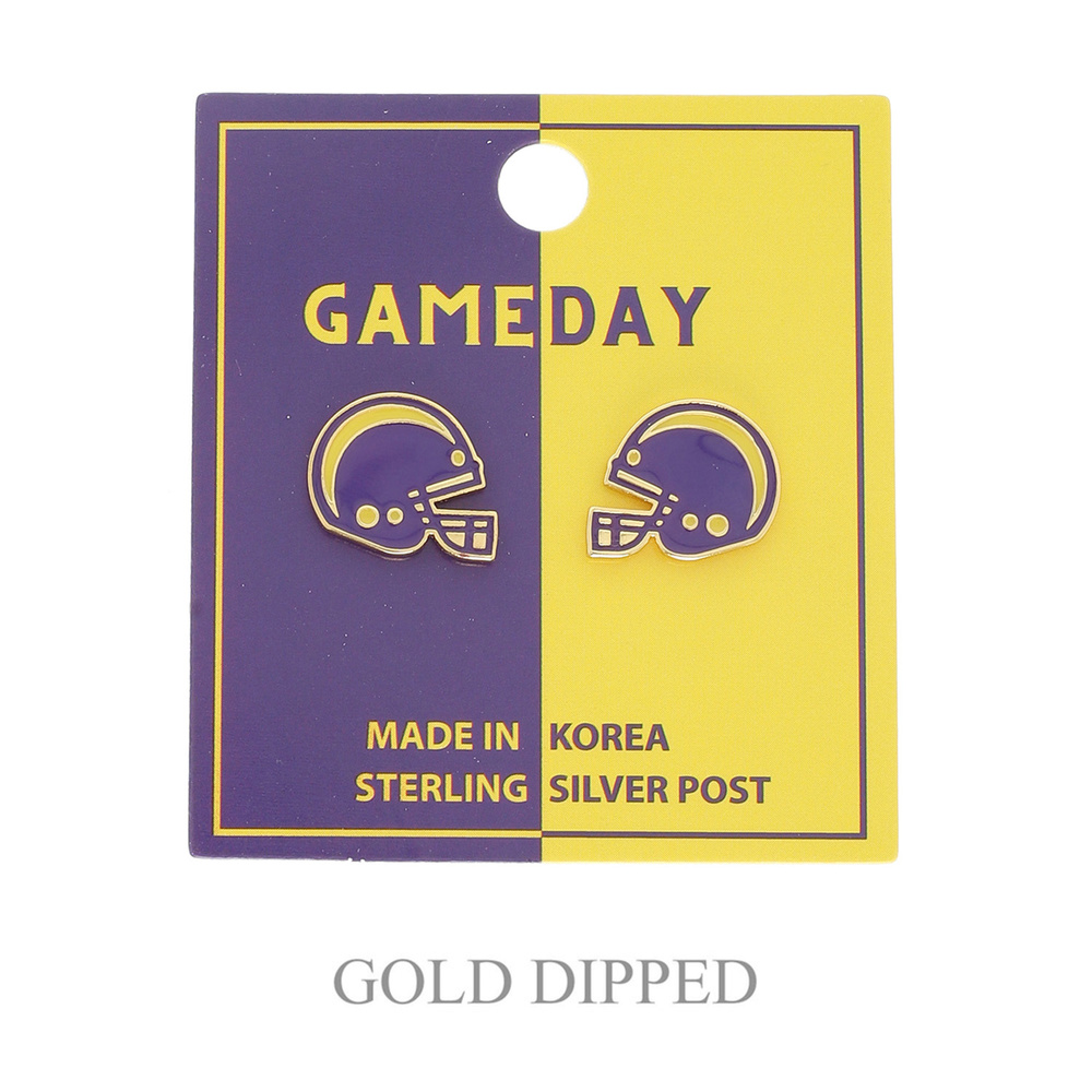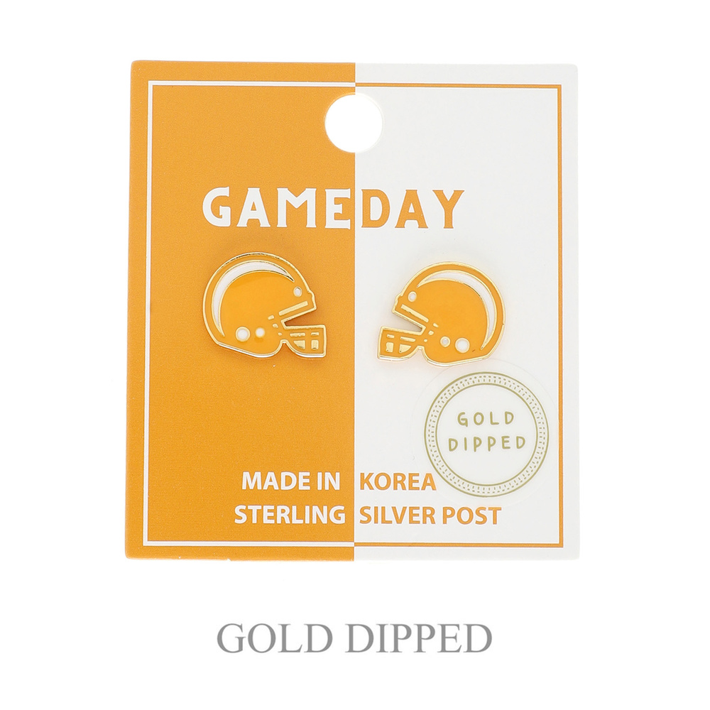 Sports Game Day Football Helmet Stud Earrings In White And Yellow Gold Plating Sterling Silver Post