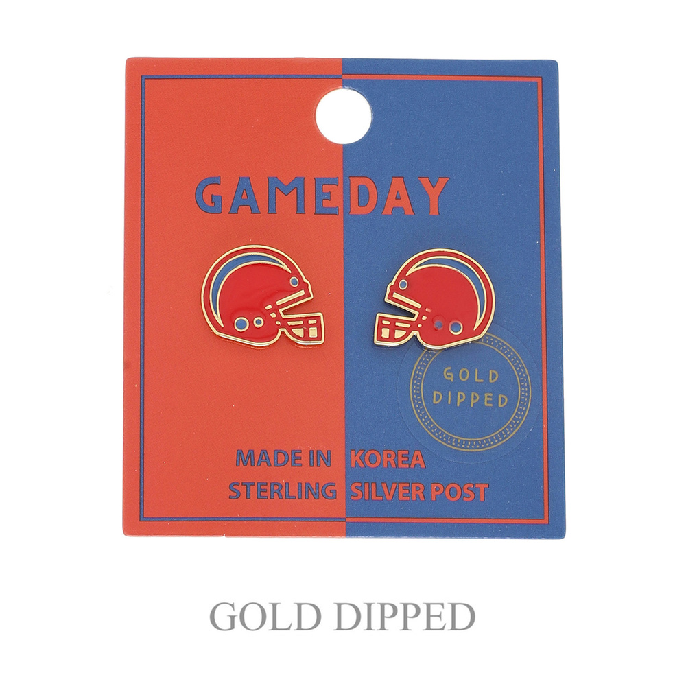SPORTS GAME DAY FOOTBALL HELMET STUD EARRINGS IN WHITE AND YELLOW GOLD PLATING STERLING SILVER POST