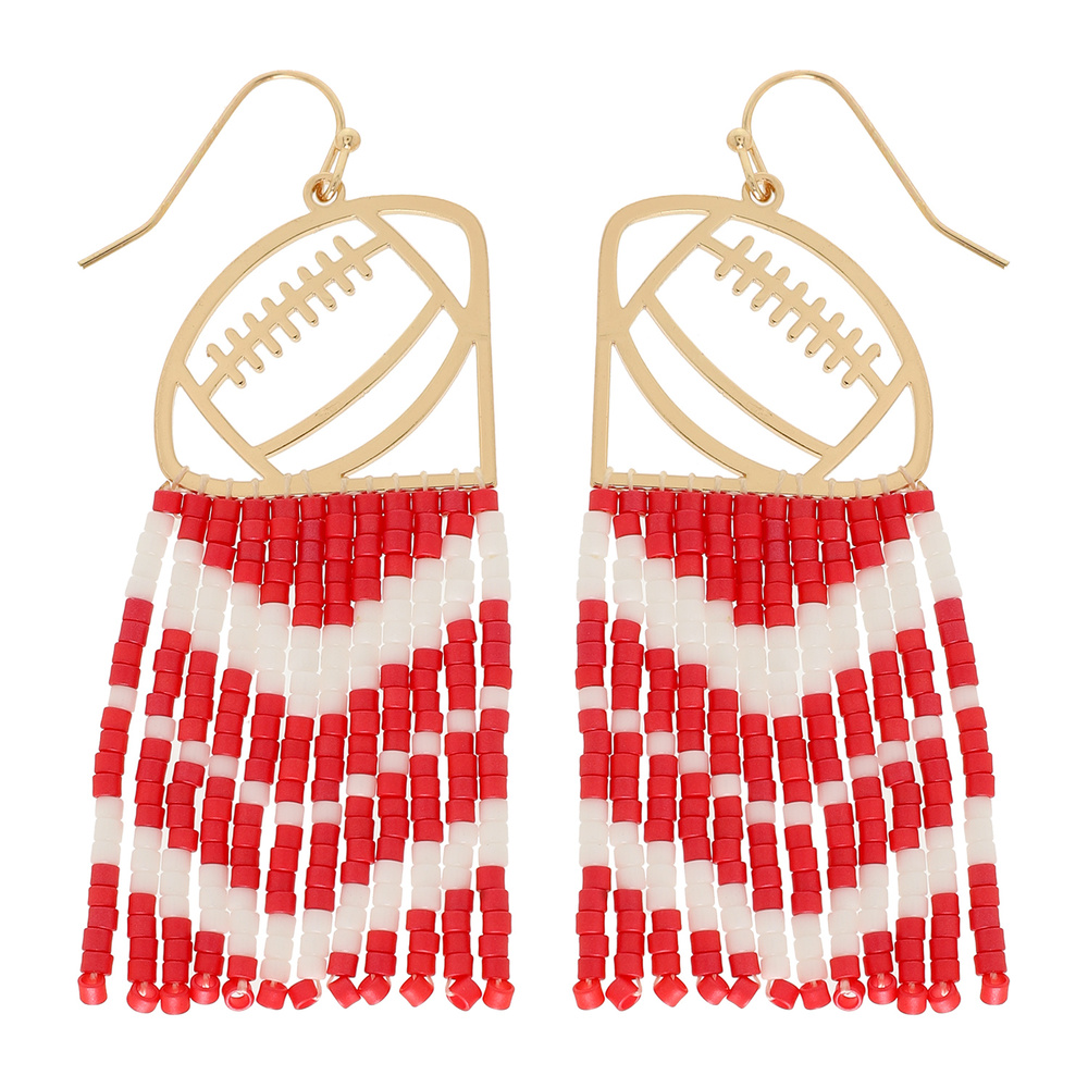 TWO-TONE GAMEDAY FOOTBALL CUTOUT SEED BEAD FRINGE EARRINGS