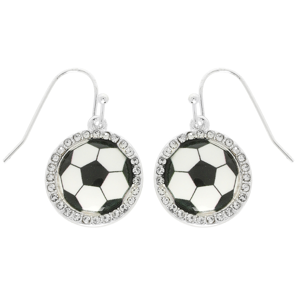 GAMEDAY RHINESTONE EMBELLISHED EPOXY SOCCER DANGLE EARRINGS