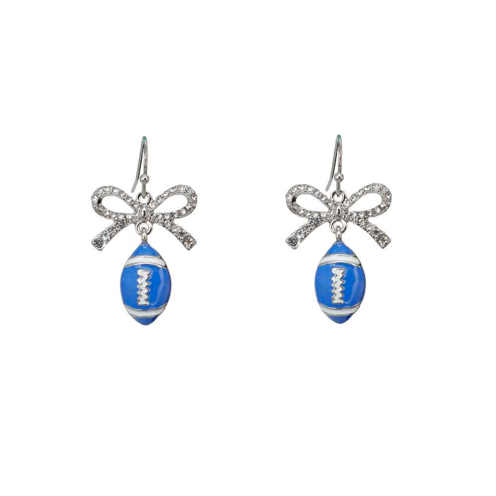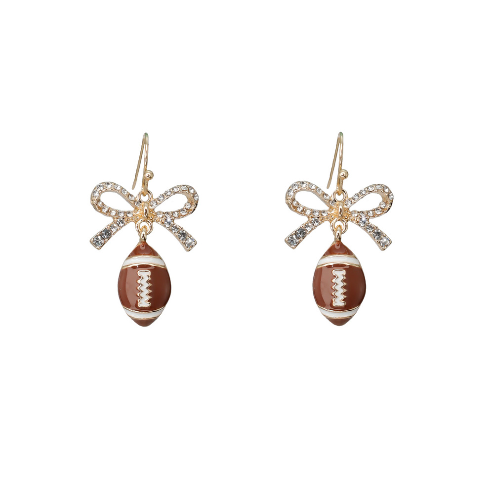 RHINESTONE PAVE FOOTBALL BOW DANGLE EARRINGS