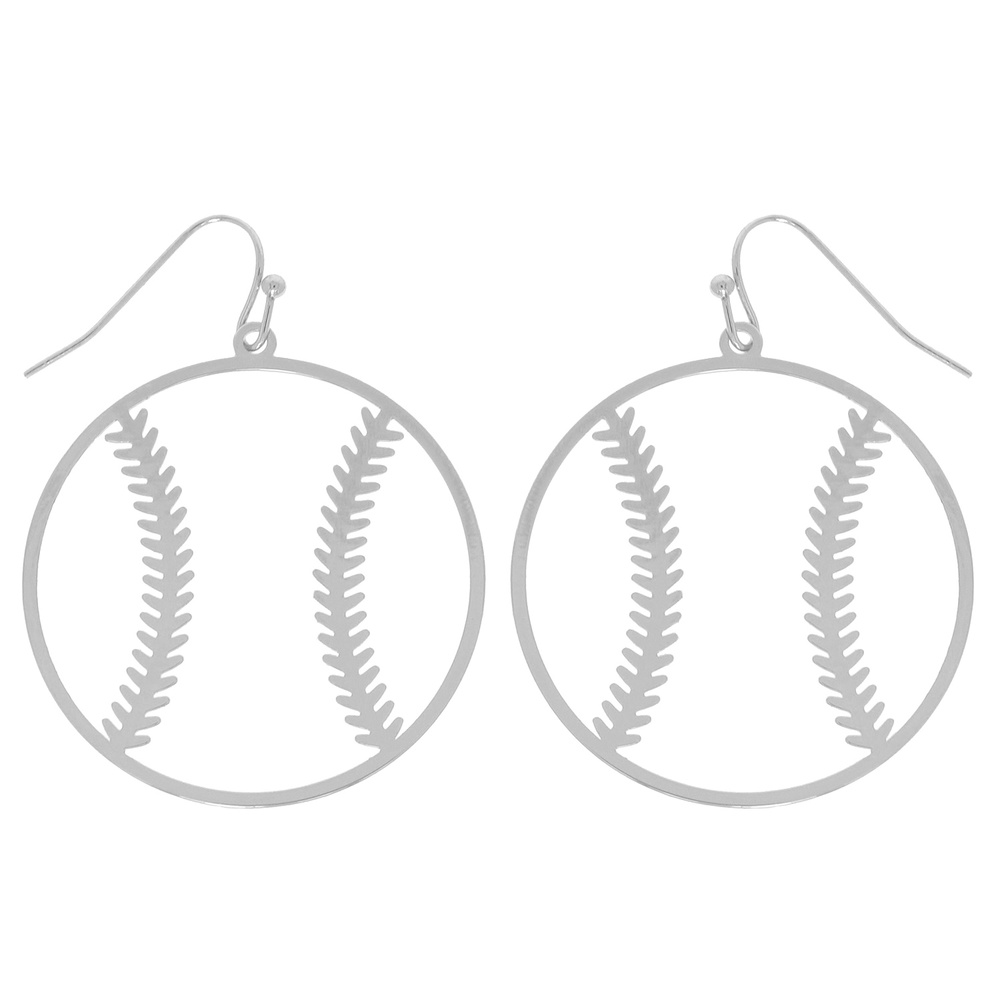 GAMEDAY BASEBALL CUTOUT DANGLE EARRINGS IN SILVER-TONE METAL