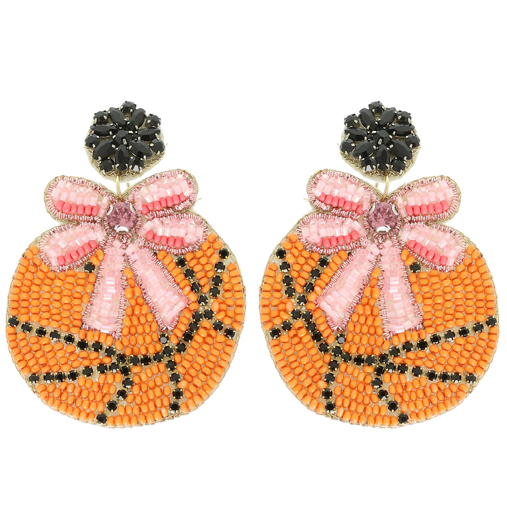 CRYSTAL BEAD EMBELLISHED RIBBONED BASKETBALL POST DANGLE EARRINGS