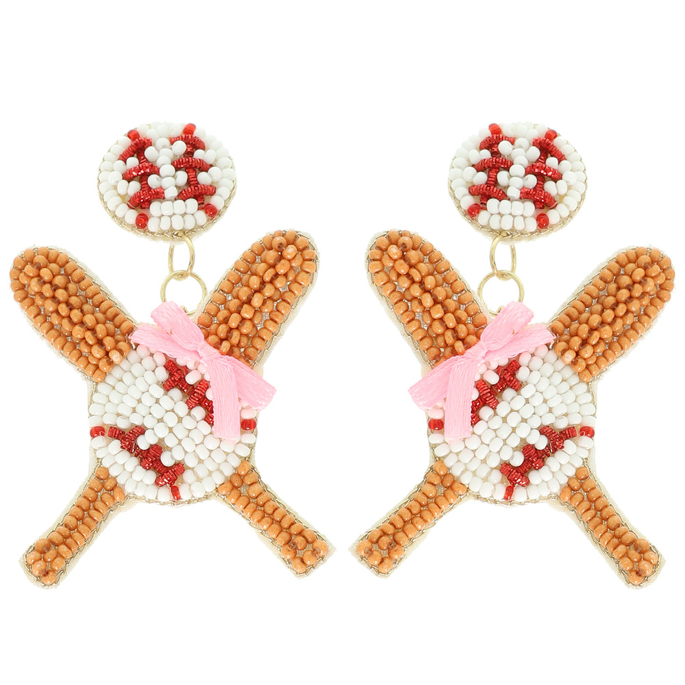 BEAD EMBELLISHED BASEBALL THEME POST DANGLE EARRINGS