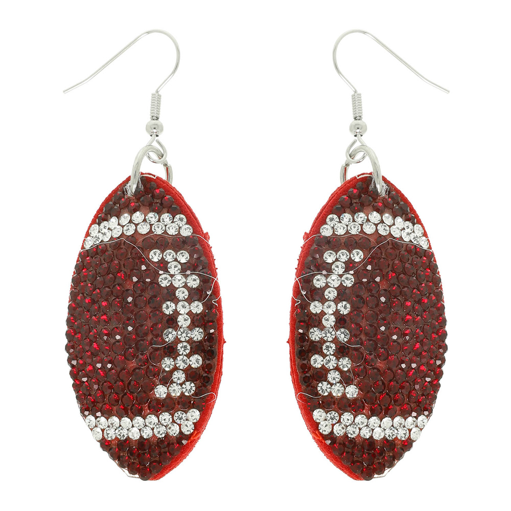 GAMEDAY RHINESTONE PAVE FAUX SUEDE FOOTBALL DANGLE EARRINGS