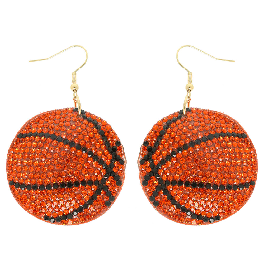 GAMEDAY RHINESTONE PAVE FAUX SUEDE BASKETBALL DANGLE EARRINGS