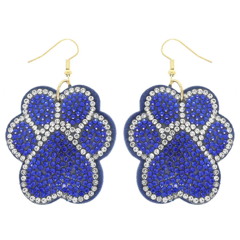 GAMEDAY RHINESTONE PAVE FAUX SUEDE PAW PRINT DANGLE EARRINGS